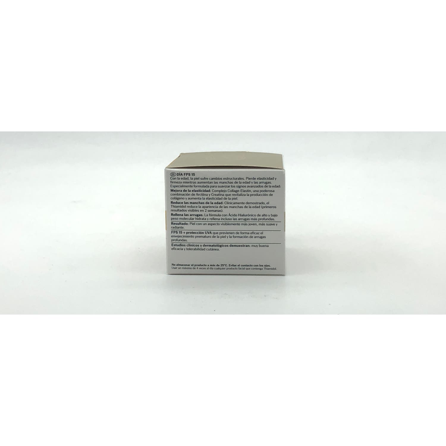 Elaborado a base de Thiamidol que contribuye a tratar la aparición de manchas, Ácido Hialurónico que da soporte a rellenar líneas de expresión y Collagen-Elastin Complex que ayuda a aumentar la elasticidad de la piel. Además, posee un factor de protección solar SPF15+.
