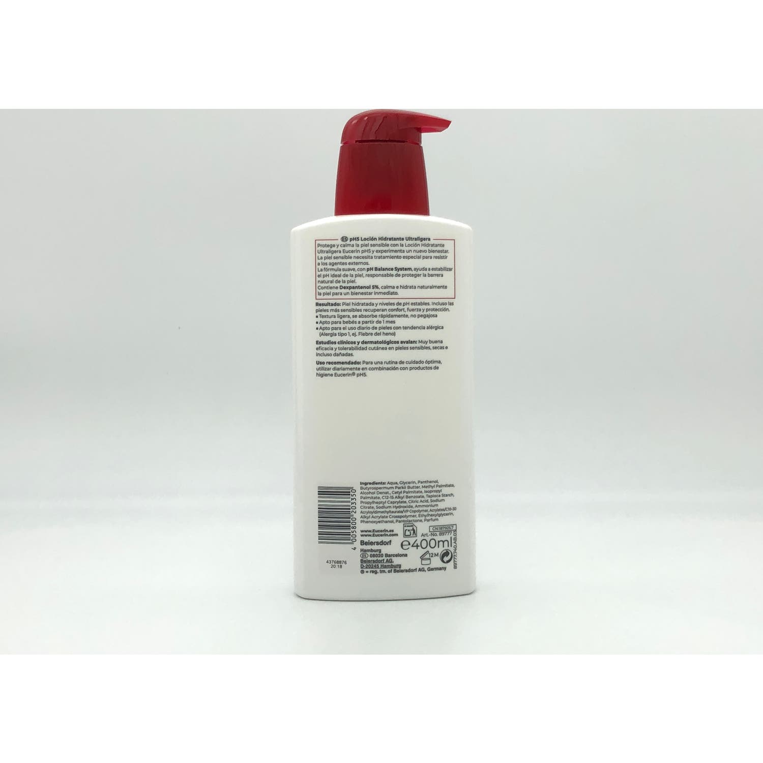 Eucerin Loción Ultraligera Hidratante Corporal pH5 400ml es una loción corporal suave que ayuda a combatir la irritación y deshidratación en las pieles sensibles y secas.