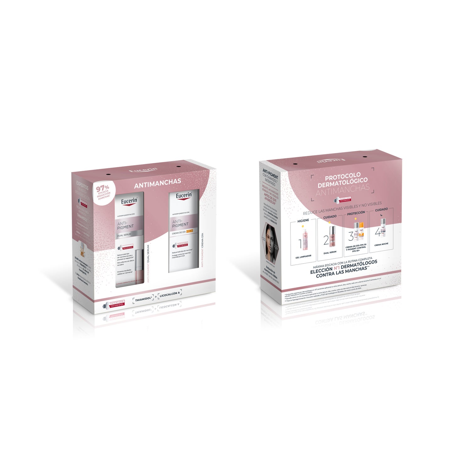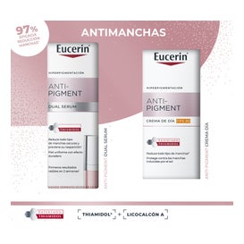 Eucerin Pack Anti-Pigment Dual Sérum 30ml + Crema de Día SPF30 50ml es un pack de edición limitada, indicada para reducir las manchas o hiperpigmentación en cualquier tipo de piel.
