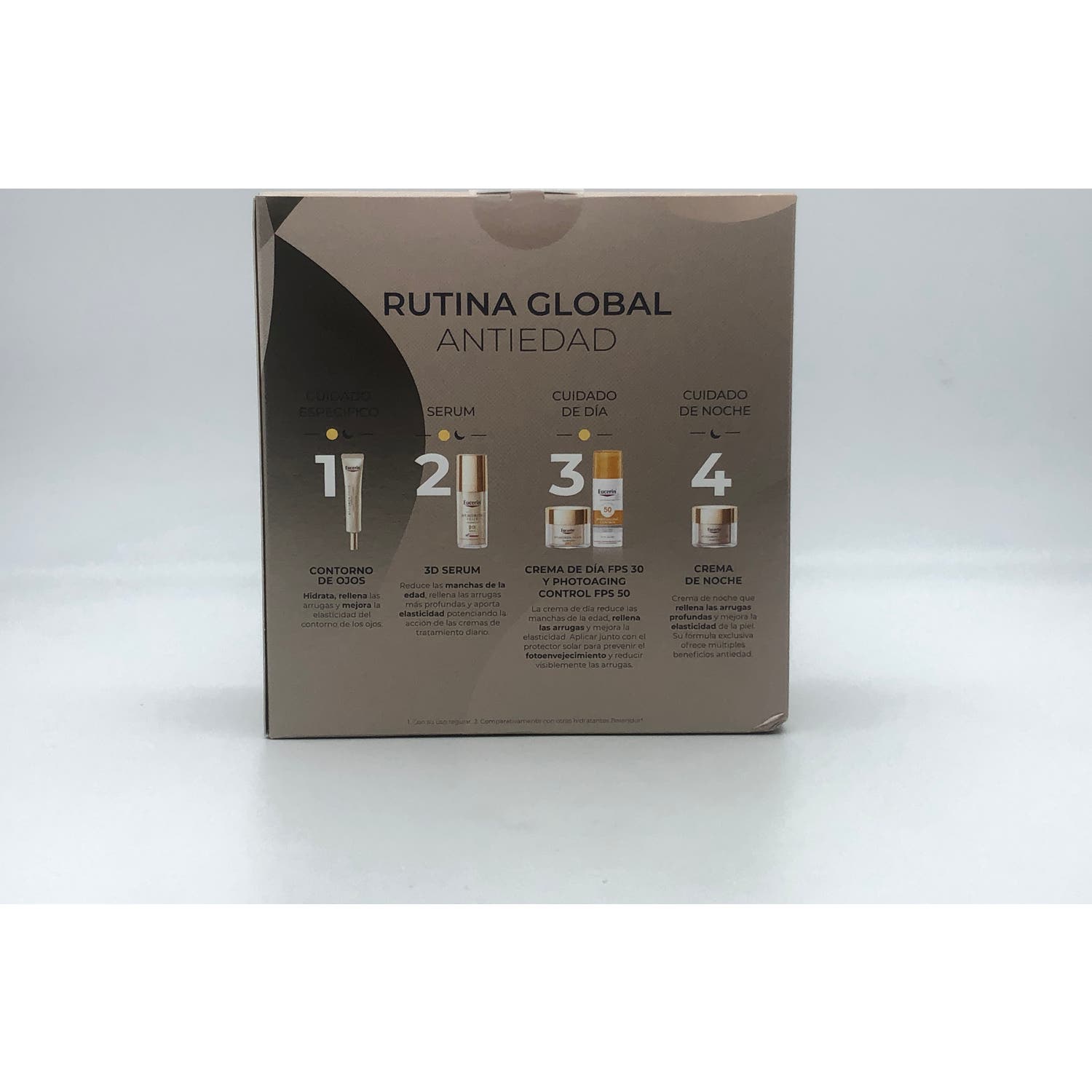 Contiene una crema facial para uso diario con filtros de protección solar, indicada para piel normal y mixta. Además, contiene ácido hialurónico de alto y bajo peso molecular, que ayudan a hidratar la piel y rellenar líneas de expresión, y glicerina con propiedades hidratantes.