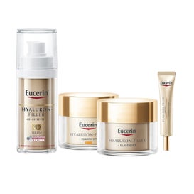Eucerin Hyaluron-Filler + Elasticity Contorno De Ojos SPF20 15ml: AQUA, GLYCERIN, HYDROGENATED COCO-GLYCERIDES, BUTYL METHOXYDIBENZOYLMETHANE, C12-15 ALKYL BENZOATE, CERA ALBA, DICAPRYLYL CARBONATE, BUTYLENE GLYCOL, BEHENYL ALCOHOL, BIS-ETHYLHEXYLOXYPHENOL METHOXYPHENYL TRIAZINE, ETHYLHEXYL TRIAZONE, PHENYLBENZIMIDAZOLE SULFONIC ACID, METHYLPROPANEDIOL, HYDROXYPROPYL STARCH PHOSPHATE, STEARYL ALCOHOL, SODIUM HYALURONATE, ARCTIUM LAPPA FRUIT EXTRACT, CREATINE, 1-METHYLHYDANTOIN-2-IMIDE, TOCOPHEROL, PALMITIC ACID, STEARIC ACID, MYRISTIC ACID, ARACHIDIC ACID, OLEIC ACID, SODIUM STEAROYL GLUTAMATE, SODIUM HYDROXIDE, DIETHYLAMINO HYDROXYBENZOYL HEXYL BENZOATE, LAUROYL LYSINE, XANTHAN GUM, SODIUM CHLORIDE, TRISODIUM EDTA, 1,2-HEXANEDIOL, ETHYLHEXYLGLYCERIN, PHENOXYETHANOL.