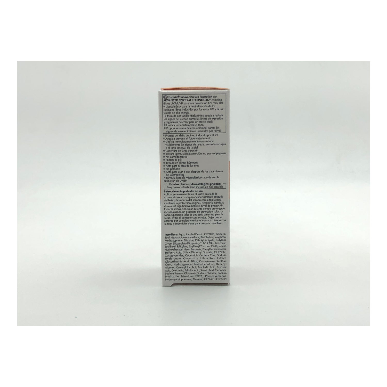 AQUA, ALCOHOL DESNATURALIZADO, CI 77891, GLICERINA, METOXIDIBENZOILMETANO DE BUTILO, BIS-ETILHEXILOXIFENOL METOXIFENIL TRIAZINA, ADIPATO DE DIBUTILO, DICAPRILATO-DICAPRATO DE BUTILENGLICOL, BENZOATO DE ALQUILO C12-15, SALICILATO DE ETILHEXILO, TRIAZONA DE ETILHEXILO, BENZOATO DE HEXILO DE DIETILAMINO HIDROXIBENZOILO, ÁCIDO FENILBENCIMIDAZOL SULFÓNICO, SÍLICE SILILATO DE DIMETILO, CI 77492, COCOGLICÉRIDOS, COPERNICIA CERIFERA CERA, HIALURONATO DE SODIO, EXTRACTO DE RAÍZ DE GLYCYRRHIZA INFLATA, ÁCIDO GLICIRRETÍNICO, SÍLICE, CARRAGENINA, GOMA XANTANA, HIDROXIPROPILMETILCELULOSA, ALCOHOL BEHENÍLICO, ALCOHOL CETEARÍLICO, ÁCIDO ARAQUÍDICO, ÁCIDO MIRÍSTICO, ÁCIDO OLEICO, ÁCIDO PALMÍTICO, ÁCIDO ESTEÁRICO, CARBÓMERO, ESTEAROIL GLUTAMATO DE SODIO, CLORURO DE SODIO, HIDRÓXIDO DE SODIO, EDTA TRISÓDICO, FENOXIETANOL, HIDROXIACETOFENONA, ALÚMINA, CI 77491, CI 77499