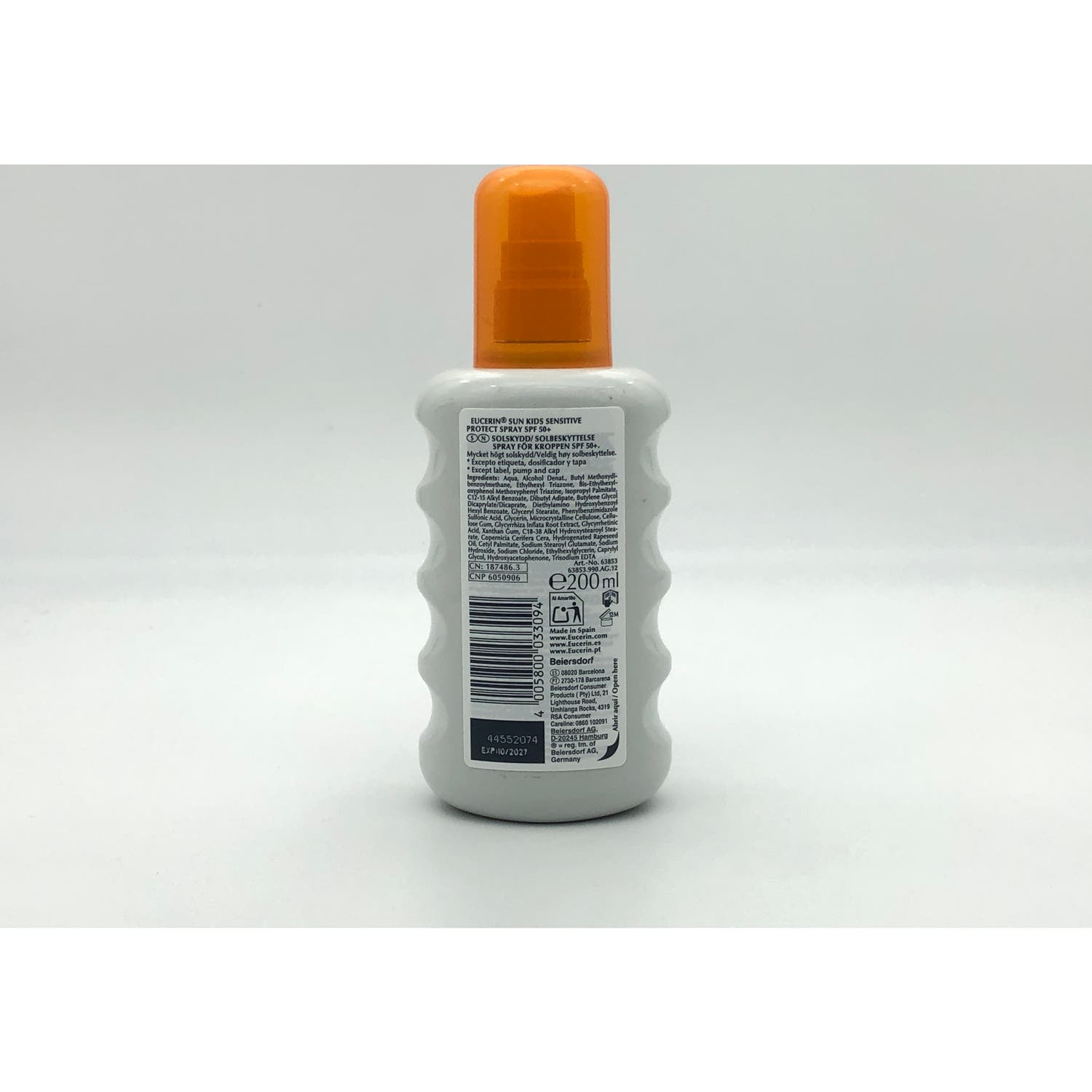 Eucerin Sun Kids Spray Sensitive Protect SPF50 200ml es un fotoprotector solar SPF50 para niños que ofrece protección alta frente a los rayos UVA/UVB y la luz HEVIS.