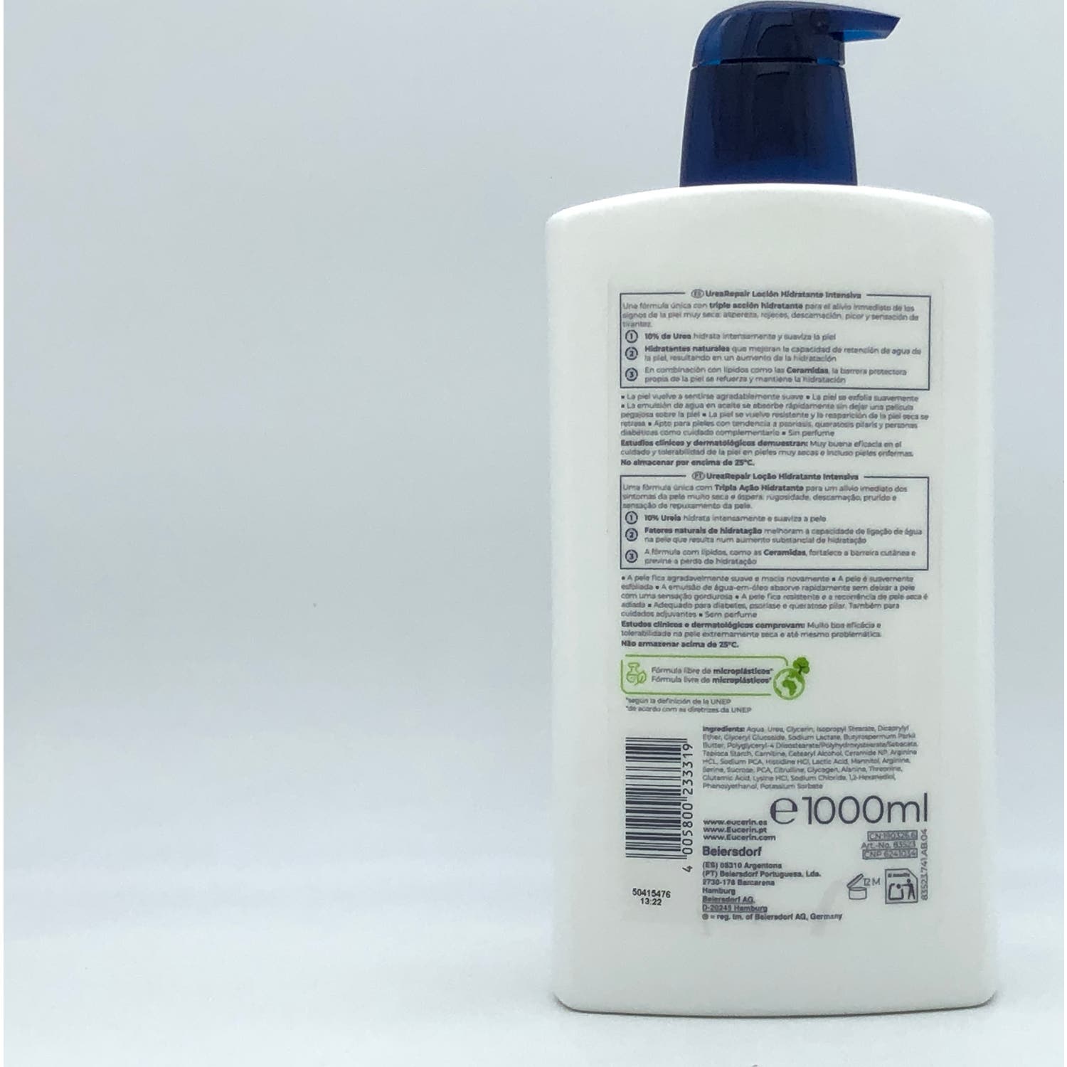 Eucerin UreaRepair Loción Hidratante Intensiva 10% Urea 1000ml es una crema para el cuidado de la piel seca y áspera, ya que ayuda a hidratarla en profundidad.