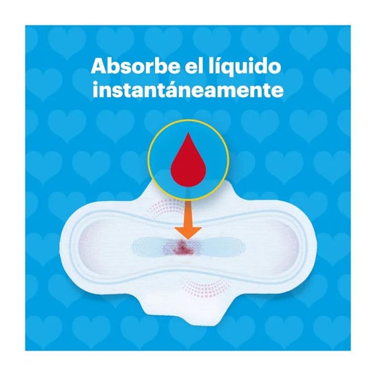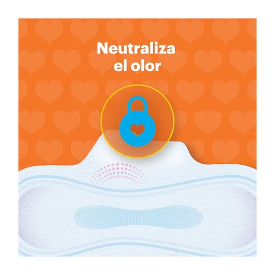 Compresas con alas que ayudan a mantener la zona íntima limpia y libre de malos olores. Absorben el flujo menstrual. Tienen perlas activas que neutralizan el olor y núcleo super absorbente. El diseño dispone de alas que permiten mantener la compresa en su sitio. Además, contiene una cobertura Cottonlike para mayor suavidad y comodidad durante el uso.