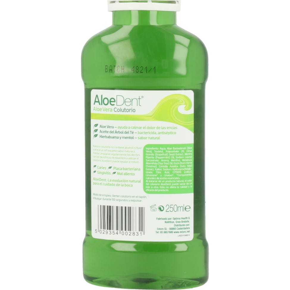 Evicro Colutorio Aloe Vera 250 Ml es un enjuague bucal ideal para mantener una higiene dental diaria óptima. Refresca el aliento y contribuye a combatir la caries, el sarro, las encías sensibles y la halitosis. Su fórmula no incluye alcohol ni sacarina, y además, no ha sido probado en animales.