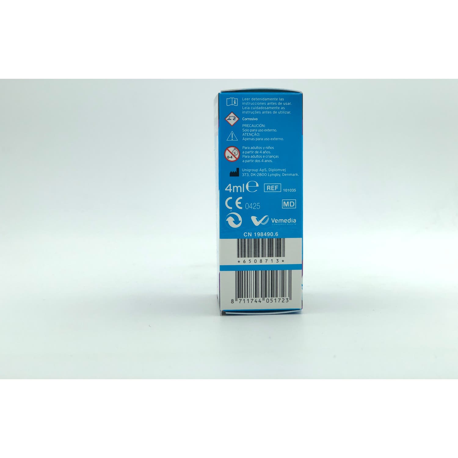 Es un producto sanitario certificado con la marca CE, con aplicación tópica directamente sobre las verrugas. No aplicar sobre verrugas genitales, ni faciales.