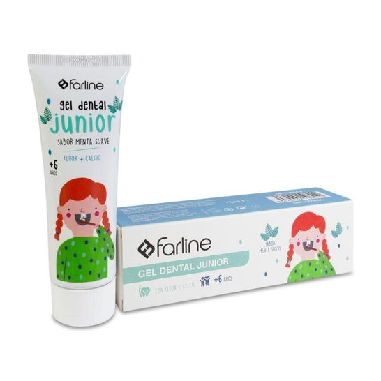 Farline Gel Dental Junior Menta Suave 75ml es una pasta de dientes infantil indicada para niños a partir de 6 años con un sabor suave a menta.