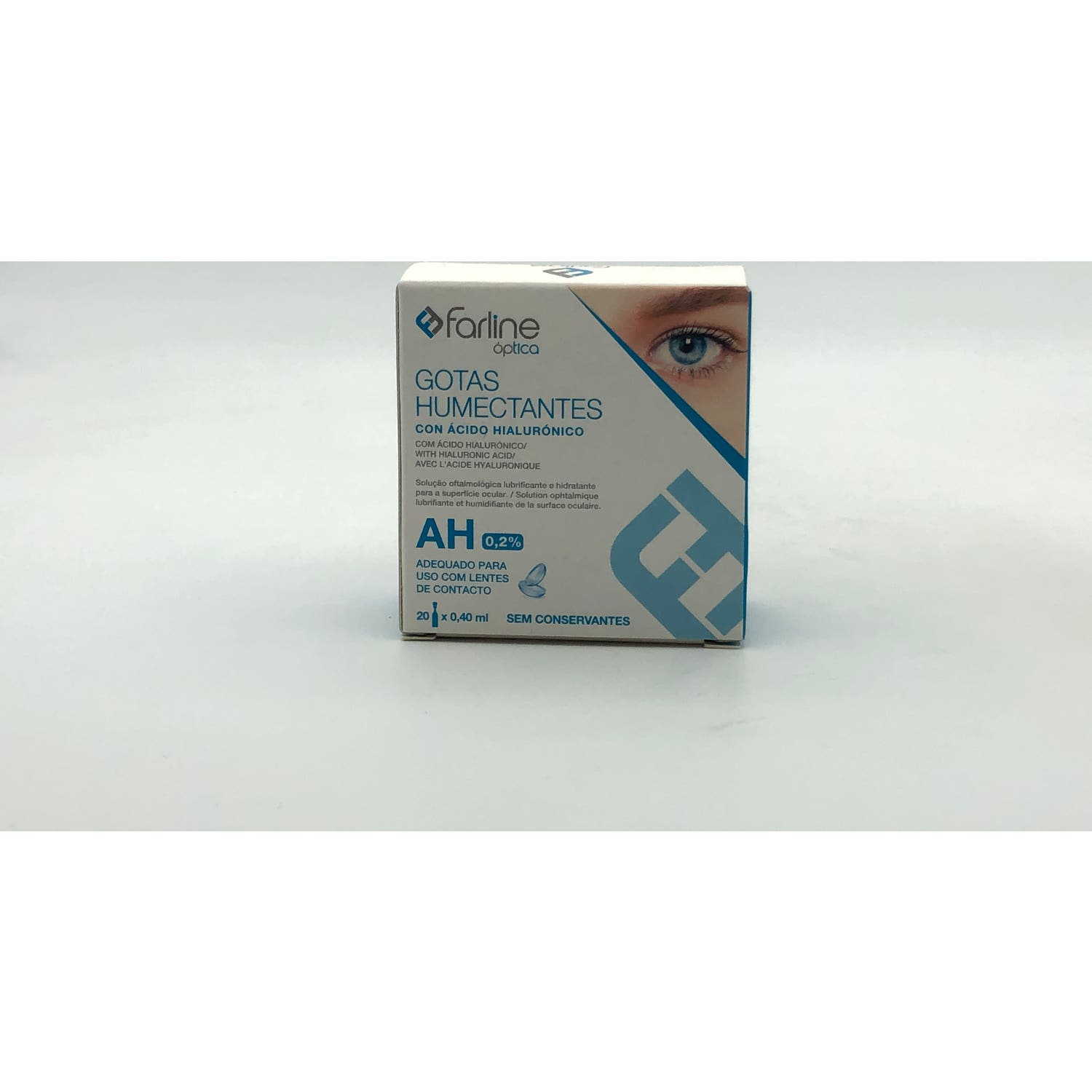 Farline Gotas Humectantes AH 0,2% 20x0,4ml son unas gotas humectantes con ácido hialurónico, ideales para aliviar la sensación de picor y la sequedad ocular.