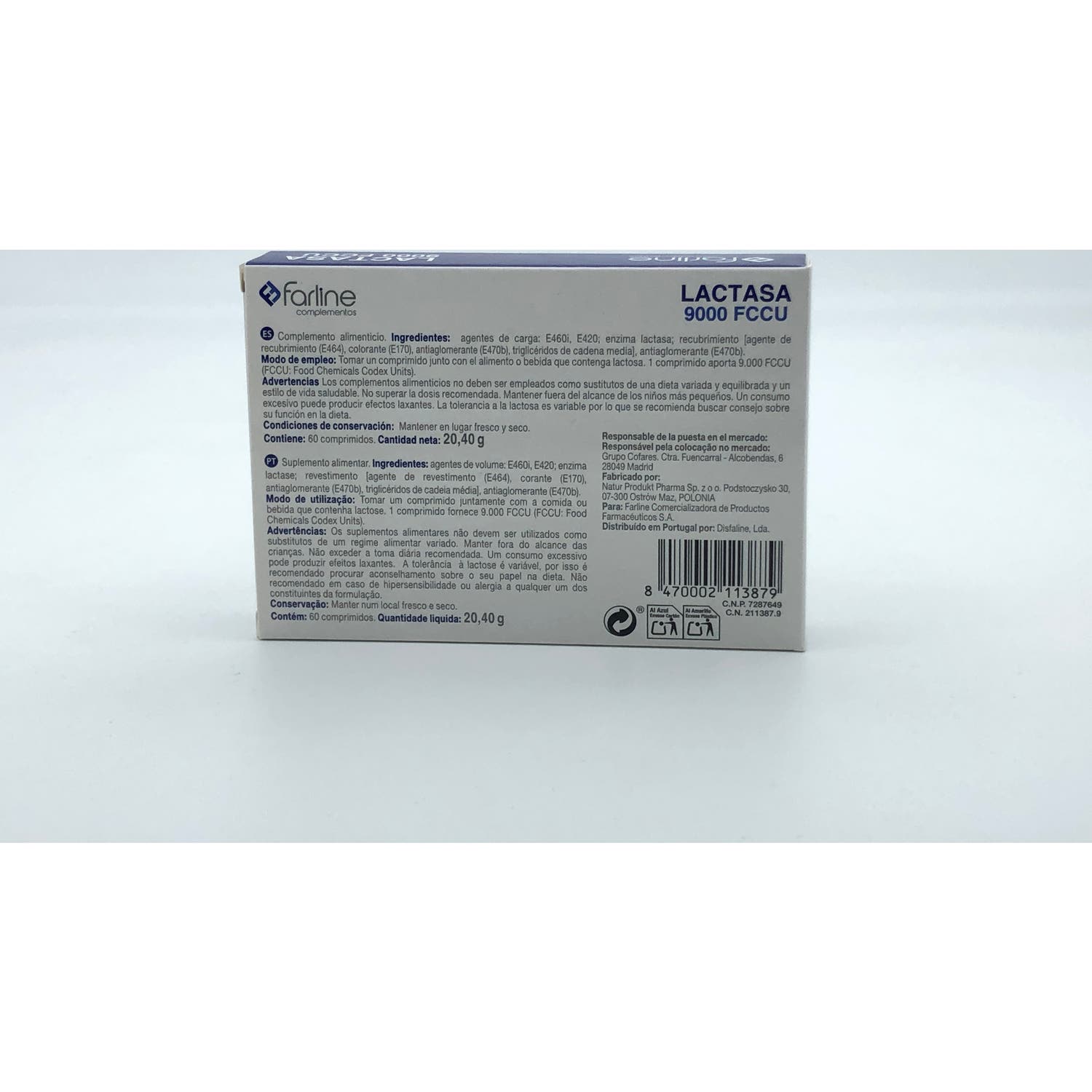 Farline Lactasa 9000 60comp es un complemento alimenticio preparado especialmente para aquellas personas que presentan problemas para digerir la lactosa.