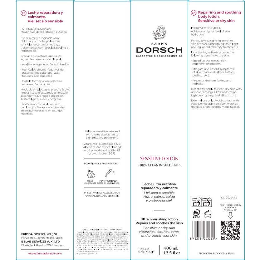 La leche ultranutritiva de Farma Dorsch es perfecta para hidratar, nutrir y suavizar las pieles secas, atópicas o delicadas. Indicado, sobre todo, para la piel delicada de los niños ya que se irrita y seca con facilidad (aunque también puede usarse en adultos en casos como pieles sometidas a tratamientos láser, dermoabrasión y/o radioterapia.).