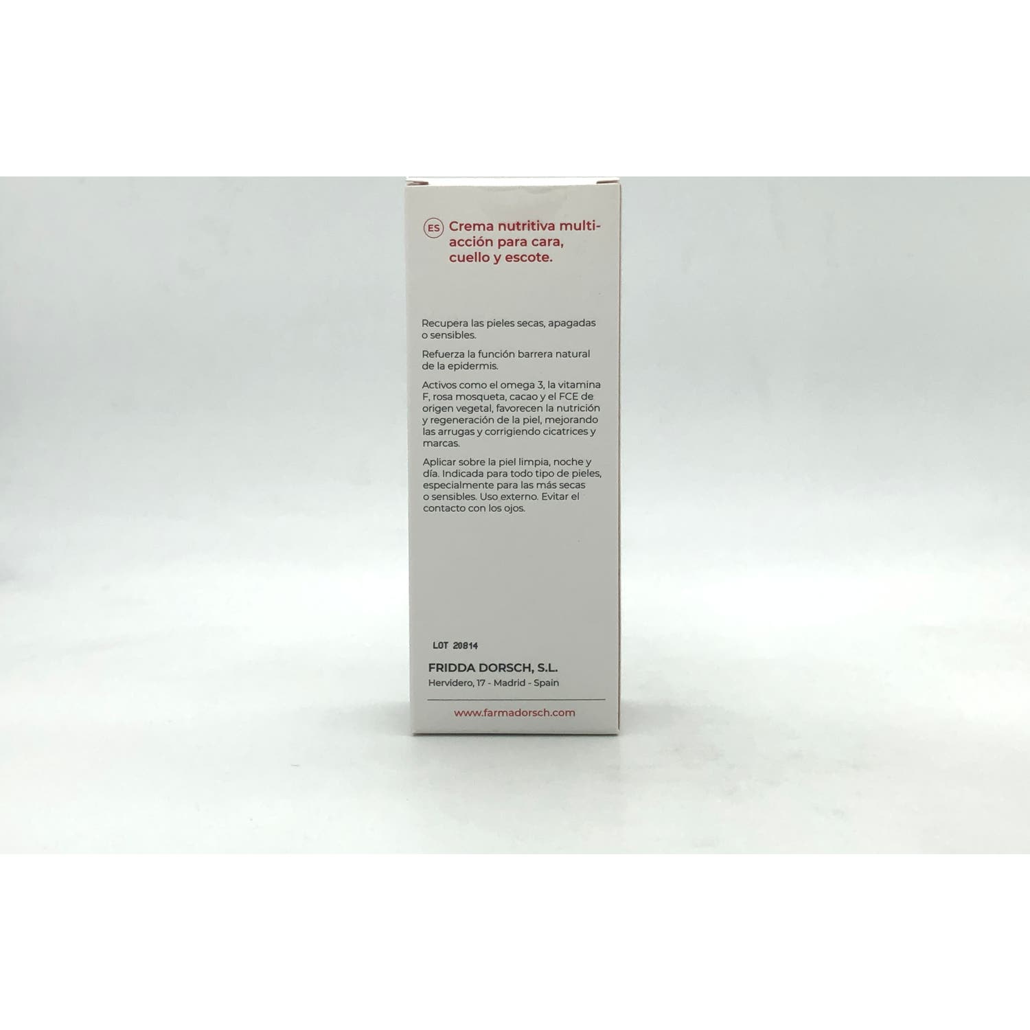 Crema facial nutritiva enriquecida con aceite de rosa mosqueta y vitamina F. Ayuda a hidratar y reparar la piel en profundidad, gracias a las propiedades regenerantes y antioxidantes de sus componentes.