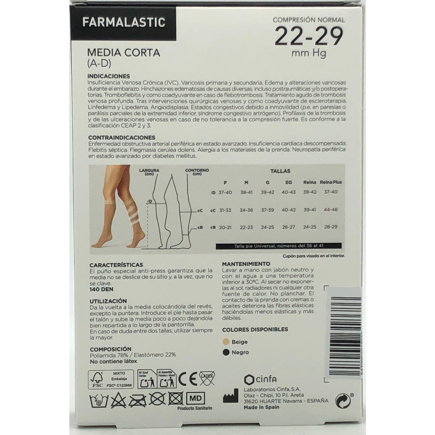 La talla mediana tiene aproximadamente un contorno de pantorrilla de 34-36 cm y de tobillo 22-23 cm.