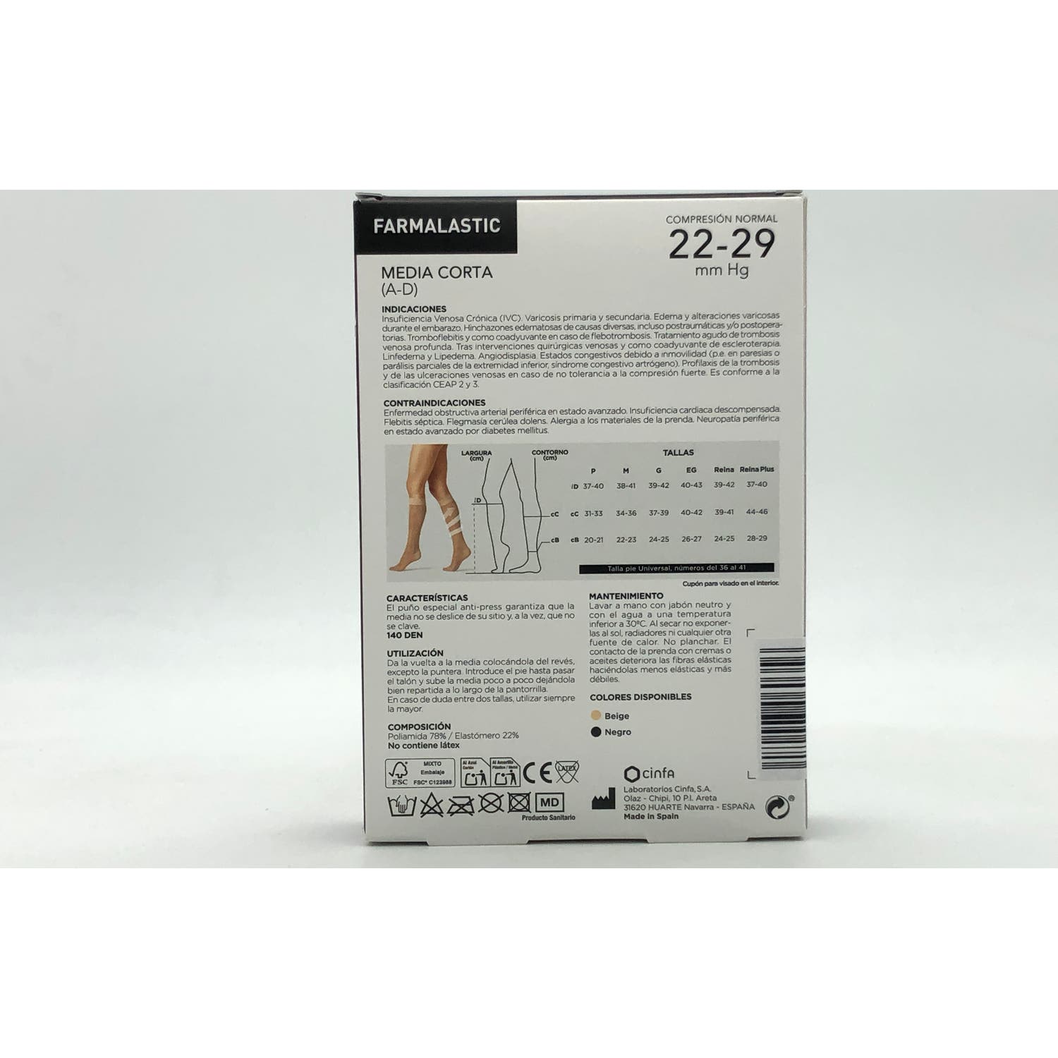 Farmalastic Media Corta (A-D) compresión normal T-pequeña negro 1 Par