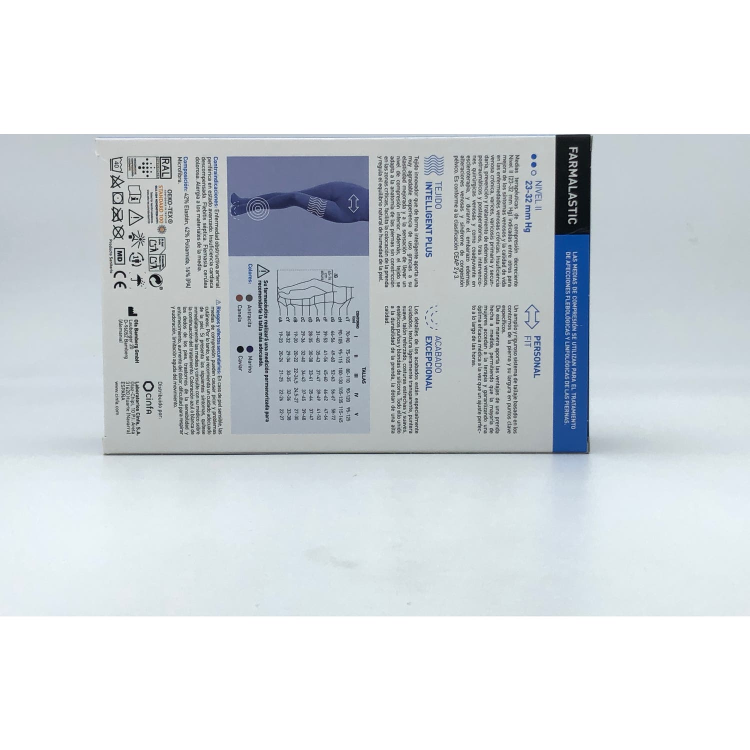 Farmalastic Novum Panty Compresion Normal Intelligent Plus Canela T-2 son unas medias terapéuticas de compresión decreciente Nivel II (23-32 mmHg) indicadas para varicosis primaria y secundaria, insuficiencia venosa crónica, edemas y alteraciones varicosas durante el embarazo o por actividad profesional, después de intervenciones quirúrgicas venosas. Es conforme a la clasificación CEAP 2 y 3.