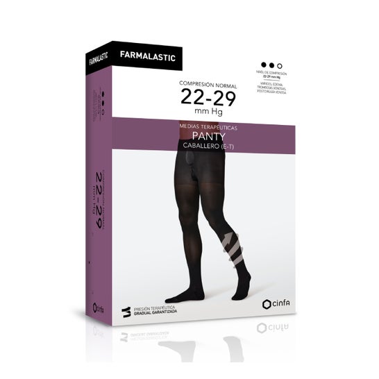 Farmalastic panty caballero (E-T) compresión normal te aporta esta compresión que tus piernas requieren. Este panty te dará seguridad y compresión para ayudar a tratar: