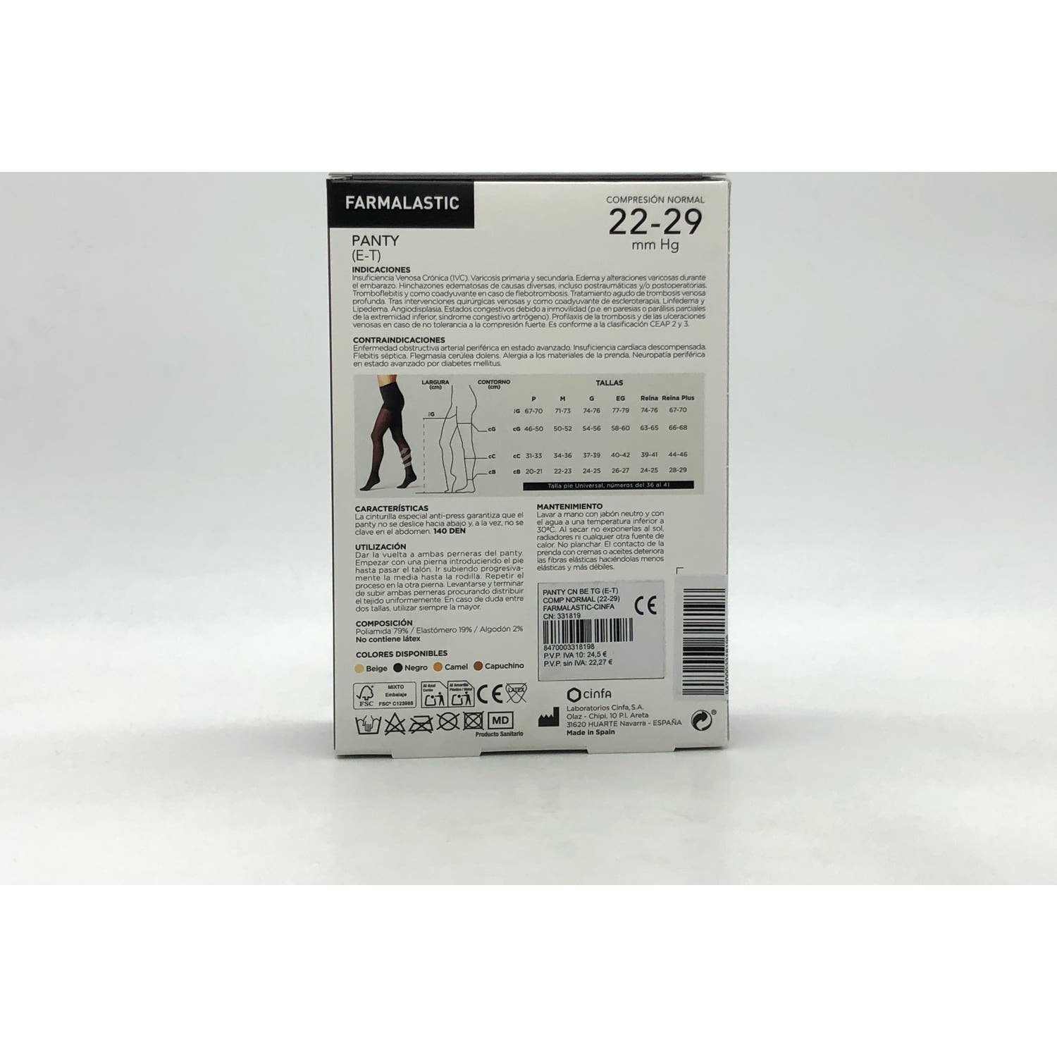 Farmalastic panty-media hasta la cintura (E-T) es ideal para aquellas personas con problemas circulatorios, varices, hinchazón o que por su trabajo permanecen de pie largos periodos de tiempo.