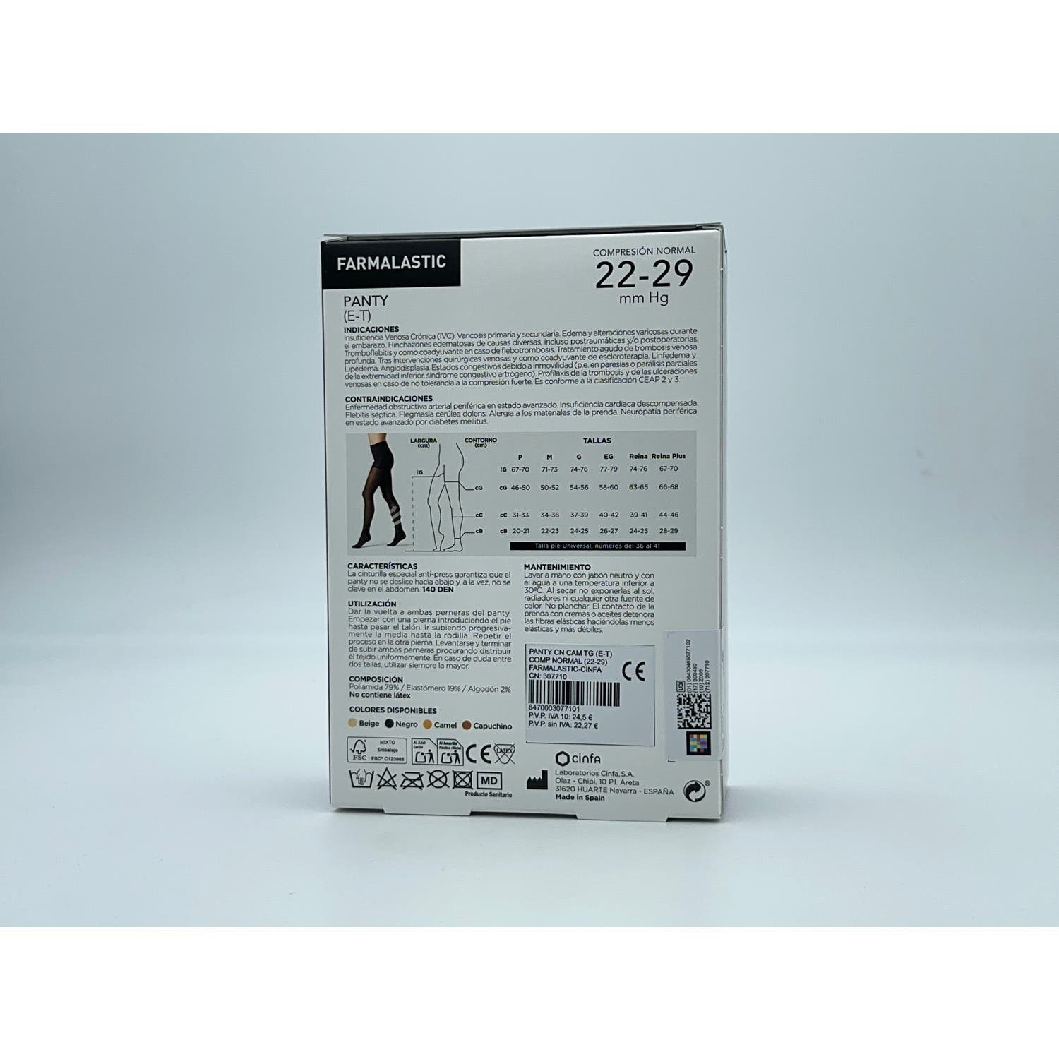 Farmalastic panty-media hasta la cintura (E-T) es ideal para aquellas personas con problemas circulatorios, varices, hinchazón o que por su trabajo permanecen de pie largos periodos de tiempo.