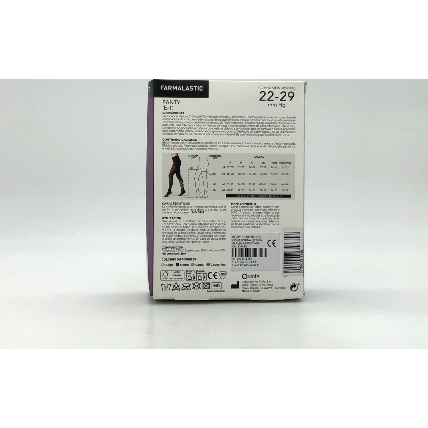 Farmalastic panty-media hasta la cintura (E-T) es ideal para aquellas personas con problemas circulatorios, varices, hinchazón o que por su trabajo permanecen de pie largos periodos de tiempo.