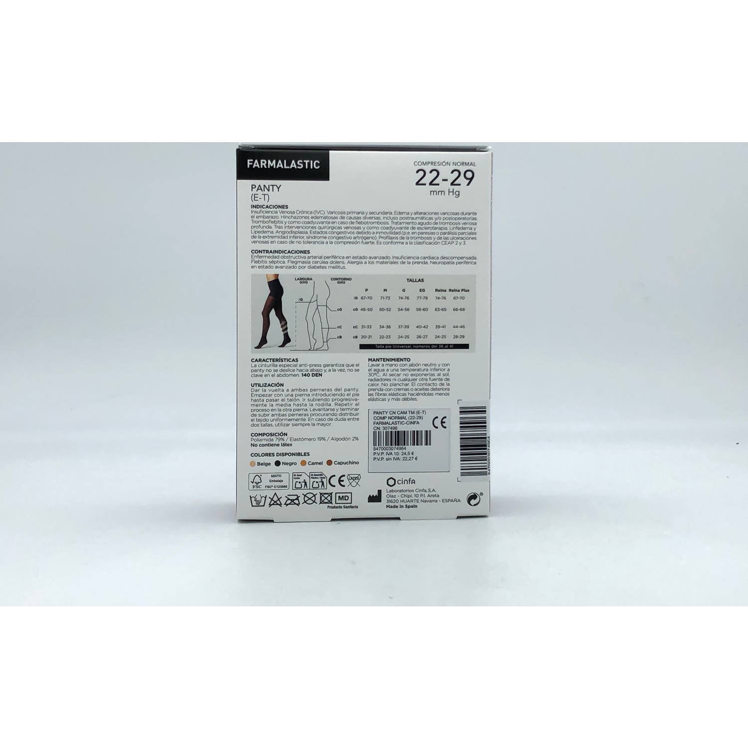 Farmalastic Panty Medias Terapeúticas Compresión Normal Camel T-M son medias hasta la cintura (E-T) para personas con problemas circulatorios, varices, edema, trombosis venosa o postcirugía venosa. Ofrece una acción relajante frente a la sensación de fatiga y molestias en las piernas, así como problemas de varices.*La talla mediana está indicada para un tobillo de 22-23cm de circunferencia y de 34-36cm de pantorrilla.**Por motivos de higiene, no se aceptarán cambios ni devoluciones de este producto.