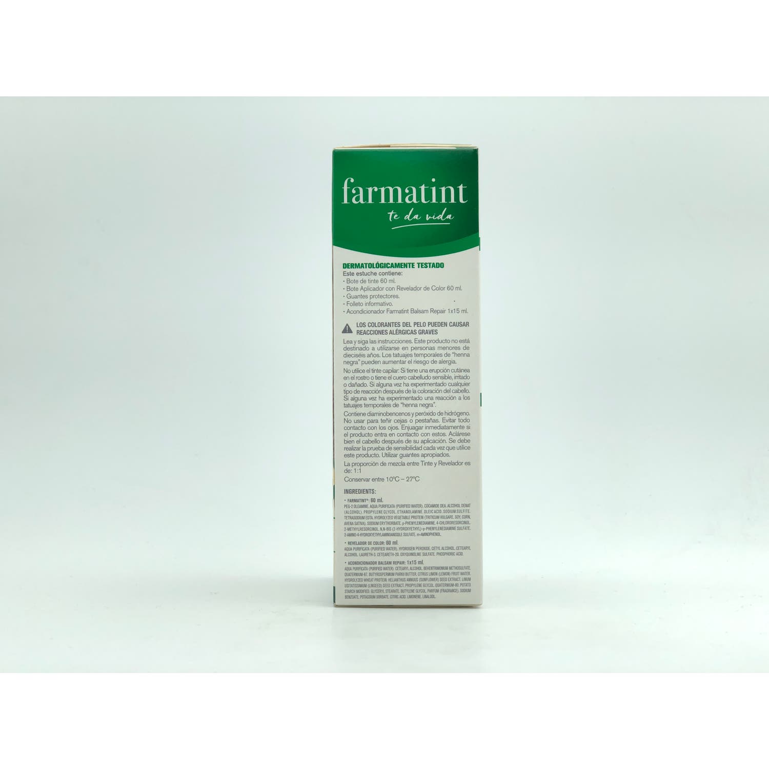 Su fórmula a base de vegetales permite hidratar intensamente el pelo mientras se tiñe. Además, si luego te aplicas el bálsamo de Farmatint, contribuirás a crear una película protectora que ayuda a impedir que el sol, el agua o la contaminación puedan afectar al color durante cinco semanas.