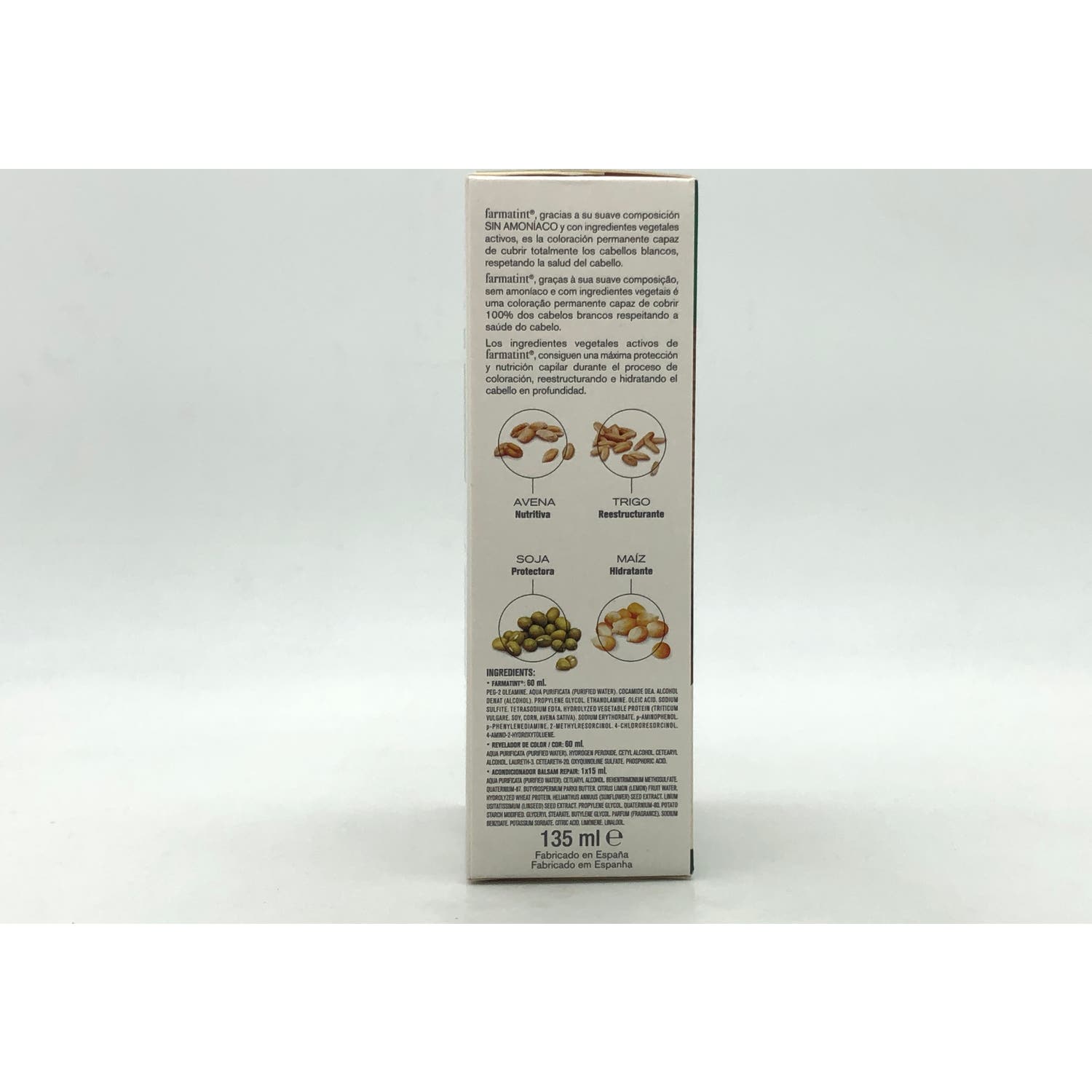 Colorante Farmatint® 60 ml. PEG-2 OLEAMINE. AQUA PURIFICATA (PURIFIED WATER). COCAMIDE DEA.ALCOHOL DENAT (ALCOHOL). PROPYLENE GLYCOL. OLEIC ACID. ETHANOLAMINE.p-PHENYLENEDIAMINE. SODIUM SULFITE. TETRASODIUM EDTA. HYDROLYZEDVEGETABLE PROTEIN (TRITICUM VULGARE, SOY, CORN, AVENA SATIVA). SODIUMERYTHORBATE. N,N-BIS (2-HYDROXYETHYL)-p-PHENYLENEDIAMINE SULFATE.2-AMINO-4-HYDROXYETHYLAMINOANISOLE SULFATE. 4 CHLORORESORCINOL.