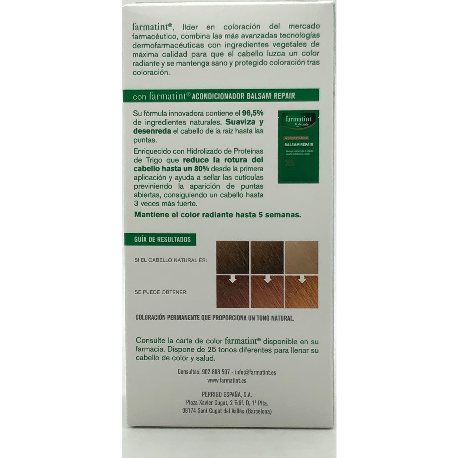 Su fórmula a base de vegetales permite hidratar intensamente el pelo durante la coloración. Además, el bálsamo de Farmatint contribuye a crear una película protectora para que el sol, el agua o la contaminación puedan afectar al color durante cinco semanas.