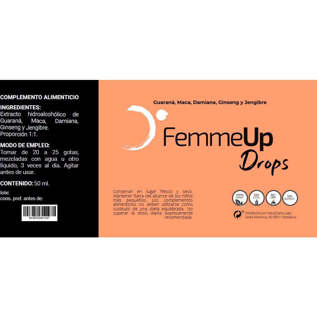 Estos ingredientes son reconocidos por su efecto estimulante y revitalizante. FemmeUp Drops 50ml favorece: