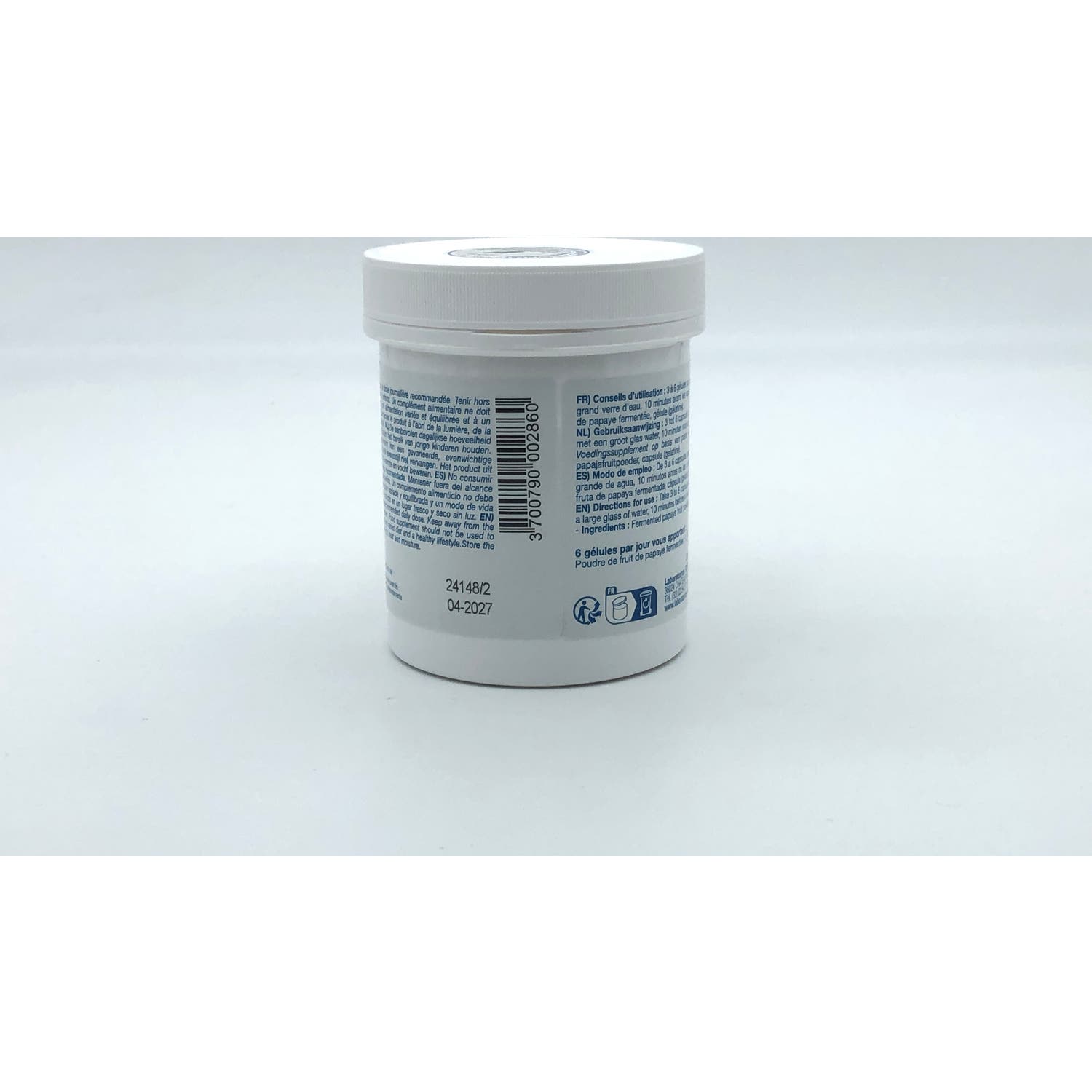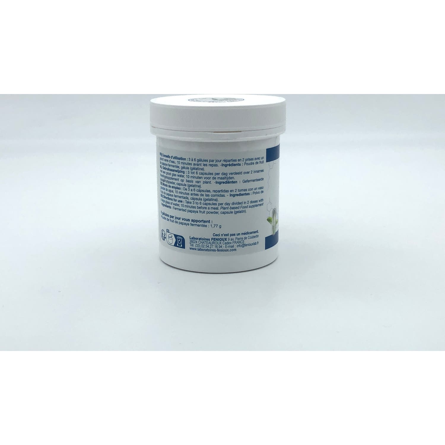 Suplemento alimenticio hecho de papaya de América Central. Es un producto que contribuye a mejorar las defensas naturales para tener un organismo "reforzado". Ayuda a retrasar los efectos del envejecimiento y refuerza las defensas naturales, al estimular de forma natural el sistema inmune. Es Altamente energético: en vitaminas y minerales. Facilita el trabajo del aparato digestivo. Un suplemento dietético no debe reemplazar una dieta variada y equilibrada y un estilo de vida saludable. Mantener fuera del alcance de los niños pequeños. Almacenar en un lugar fresco y seco.