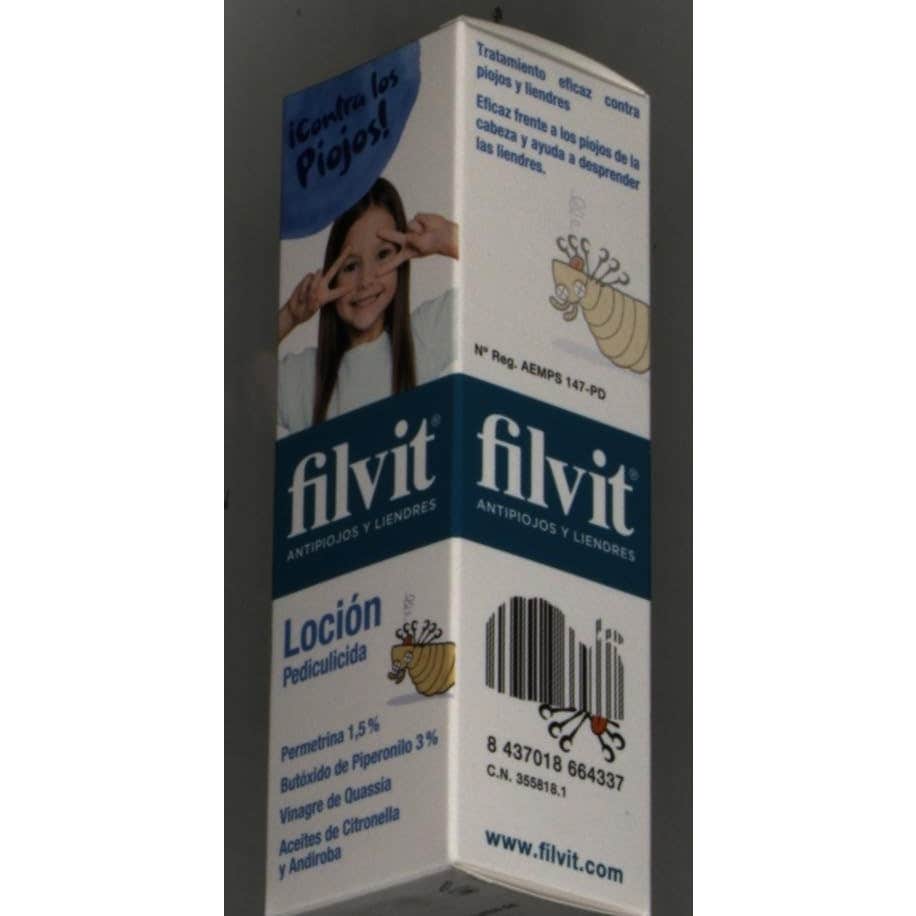 Filvit loción antiparasitaria es una completa fórmula que te ayudará a eliminar los piojos y liendres de tus hijos en 3 sencillos pasos, combinando la loción con Filvit Champú y Filvit Peine arrastra piojos.