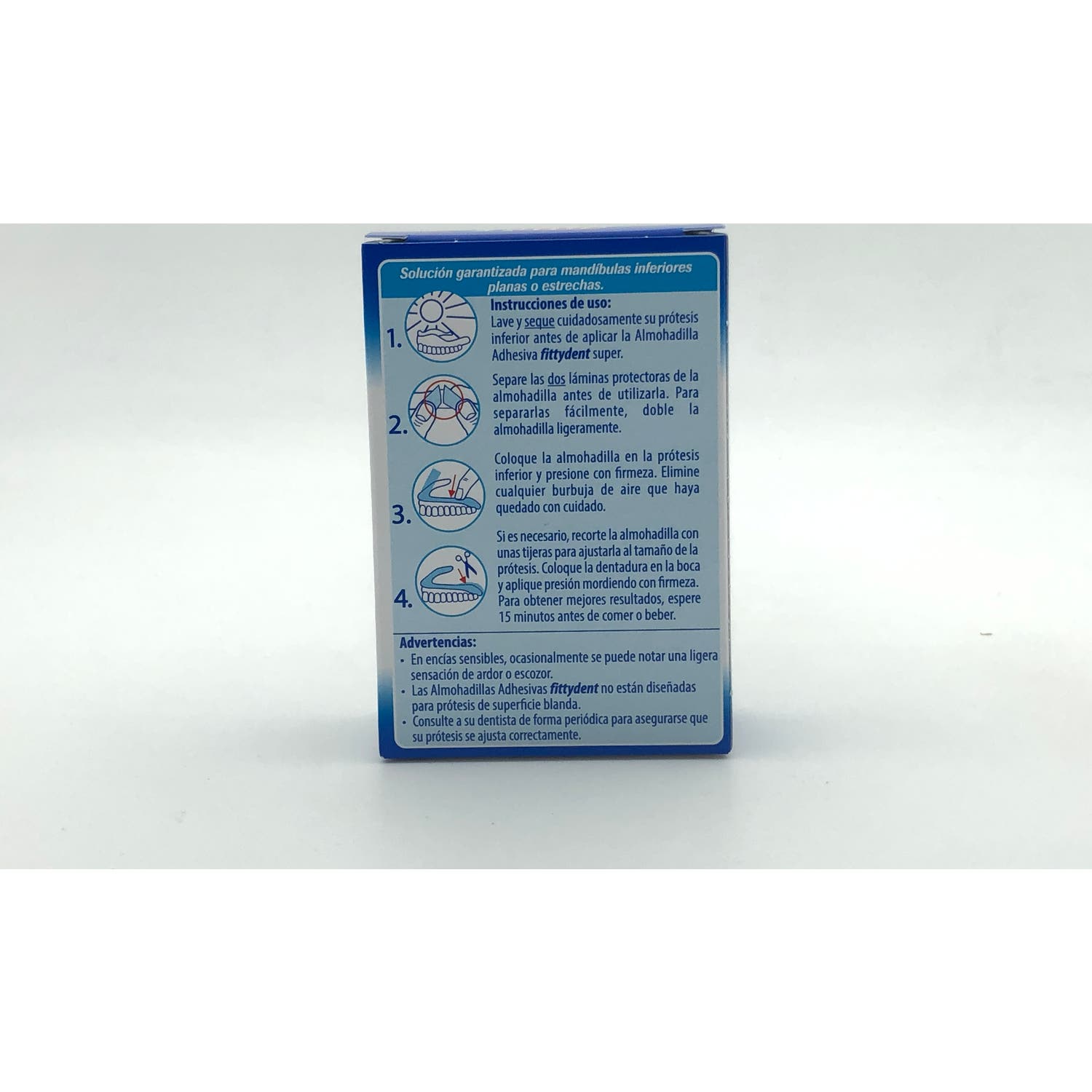 Fittydent Super Almohadillas Adhesivas 15uds es una almohadilla adhesiva para la sujeción y amortiguación de las dentaduras postizas inferiores. Ayuda a prevenir de la fricción e irritaciones en las encías, ocasionadas por la utilización de prótesis dentales.