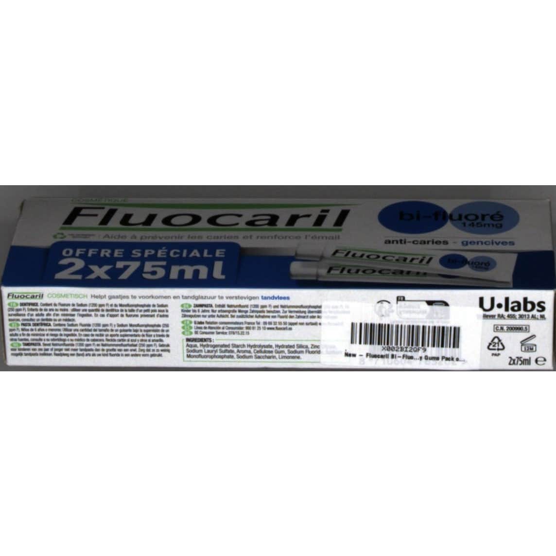 El dentífrico bi-fluorado de Fluocaril para encías sensibles. Es una pasta de dientes que contiene 145 mg de flúor por cada 100 g o 1450 ppm, y ahora contiene citrato de potasio. Su fórmula con alto contenido de flúor mejora el brillo natural del esmalte de tus dientes, al tiempo que ayuda a prevenir la caries.