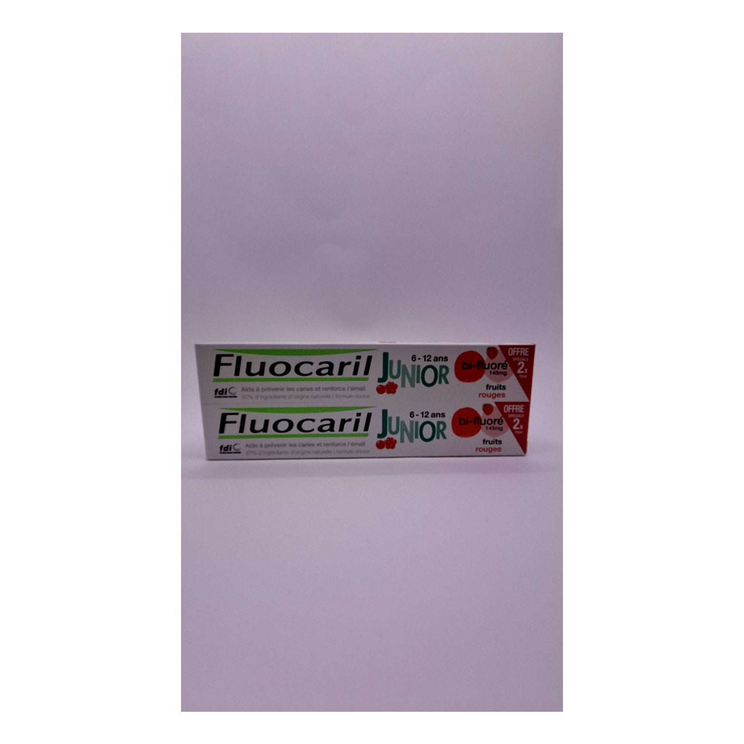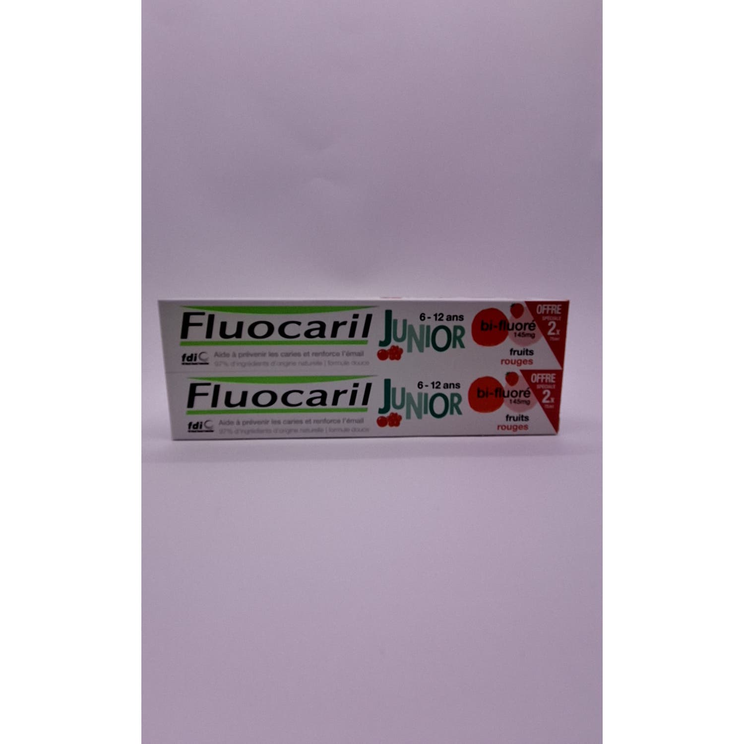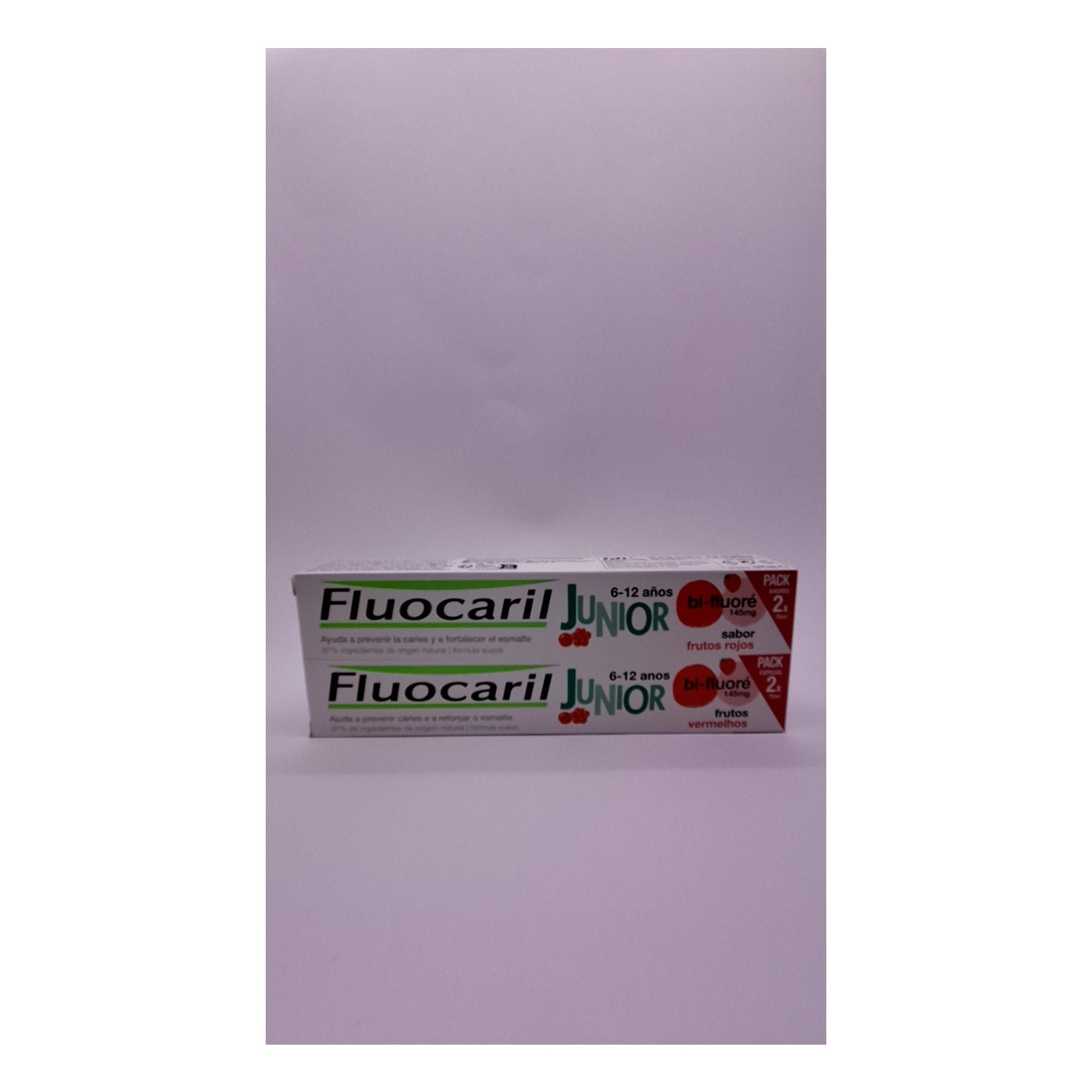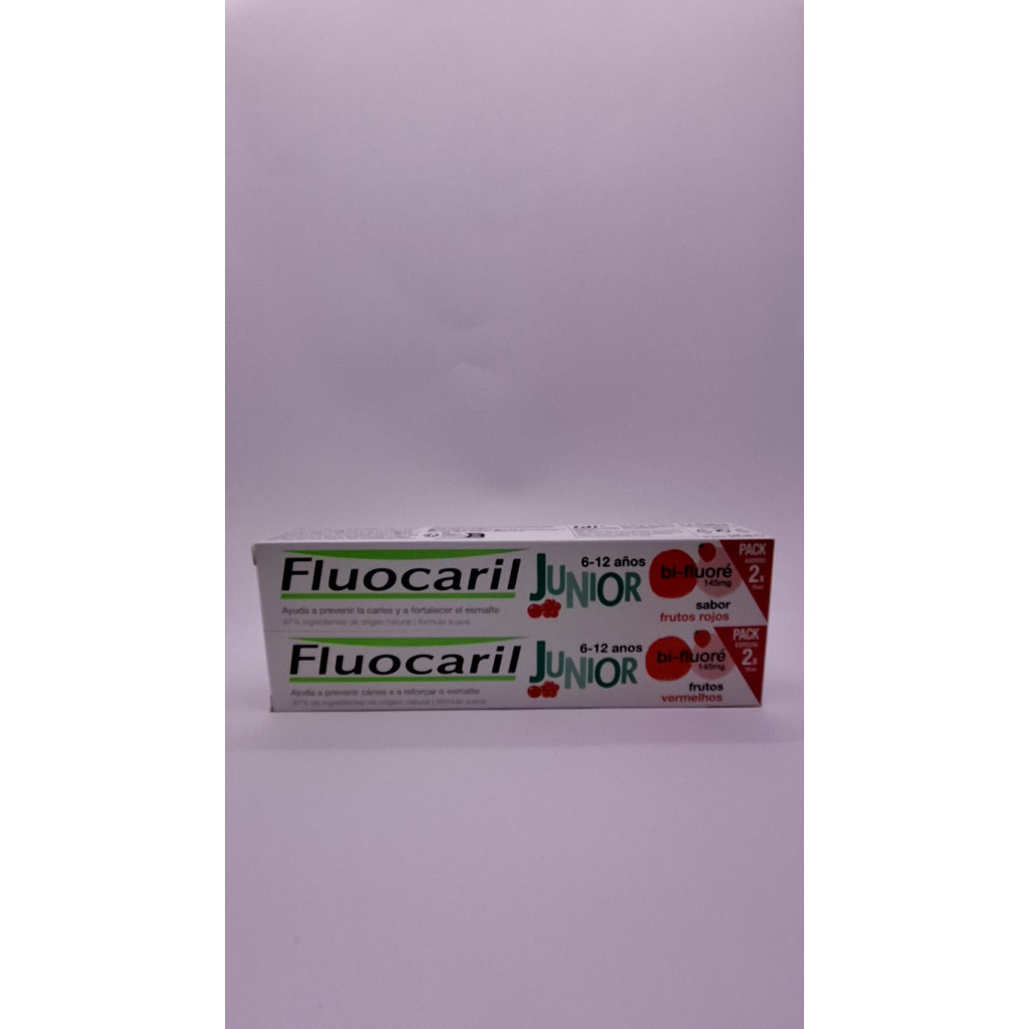 Fluocaril Duplo Pasta Junior Sabor Frutos Rojos 2x75ml es una pasta dental infantil con flúor que ayuda a disminuir la formación de caries mientras refuerza el esmalte de los dientes. Con sabor a frutos rojos.
