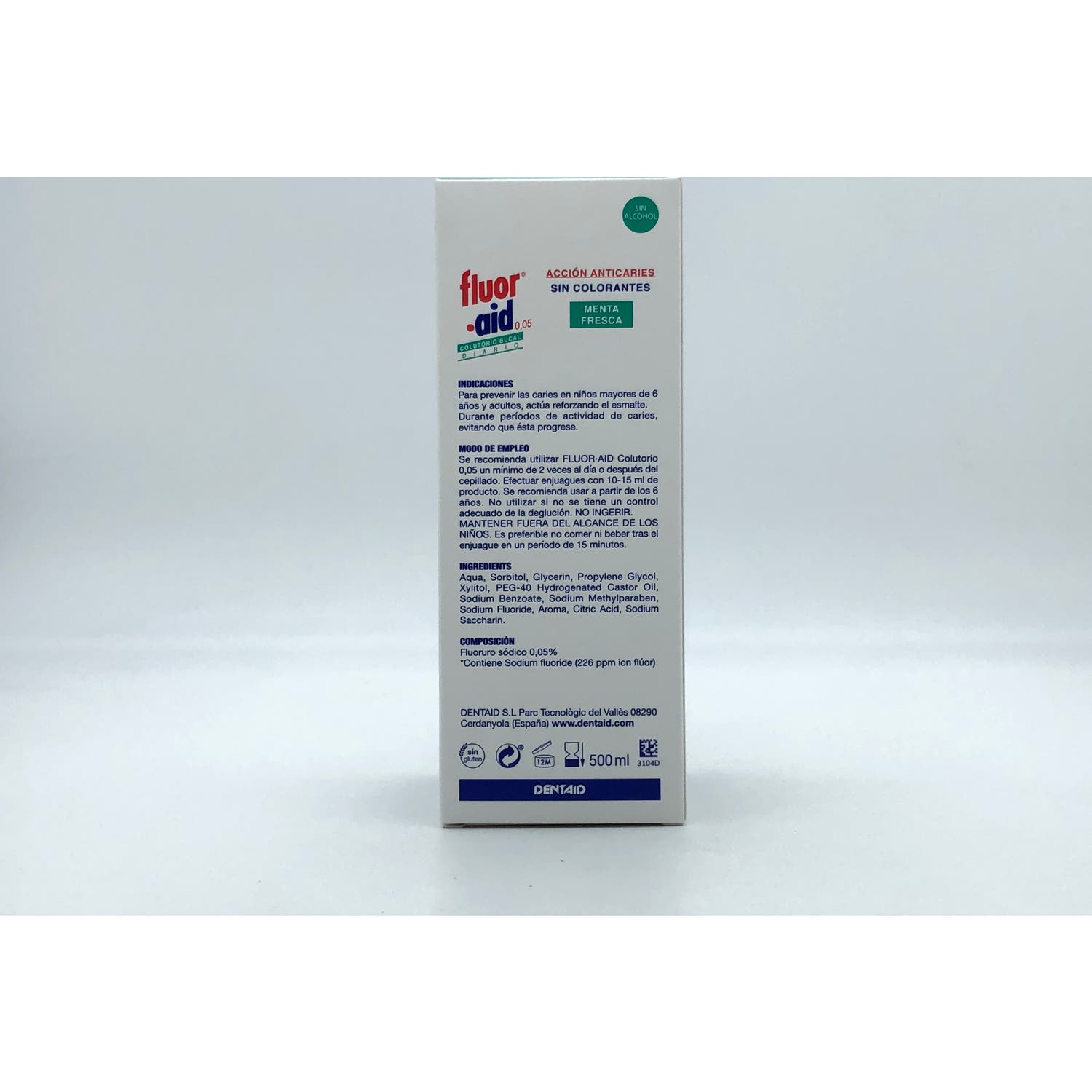 Fluor Aid Colutorio Diario 500ml es un enjuague dental específicamente desarrollado para cuidar y proteger los dientes y encías, previniendo la aparición de caries y la mineralización de su esmalte.