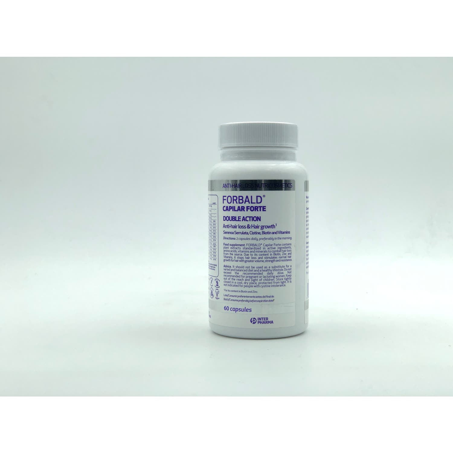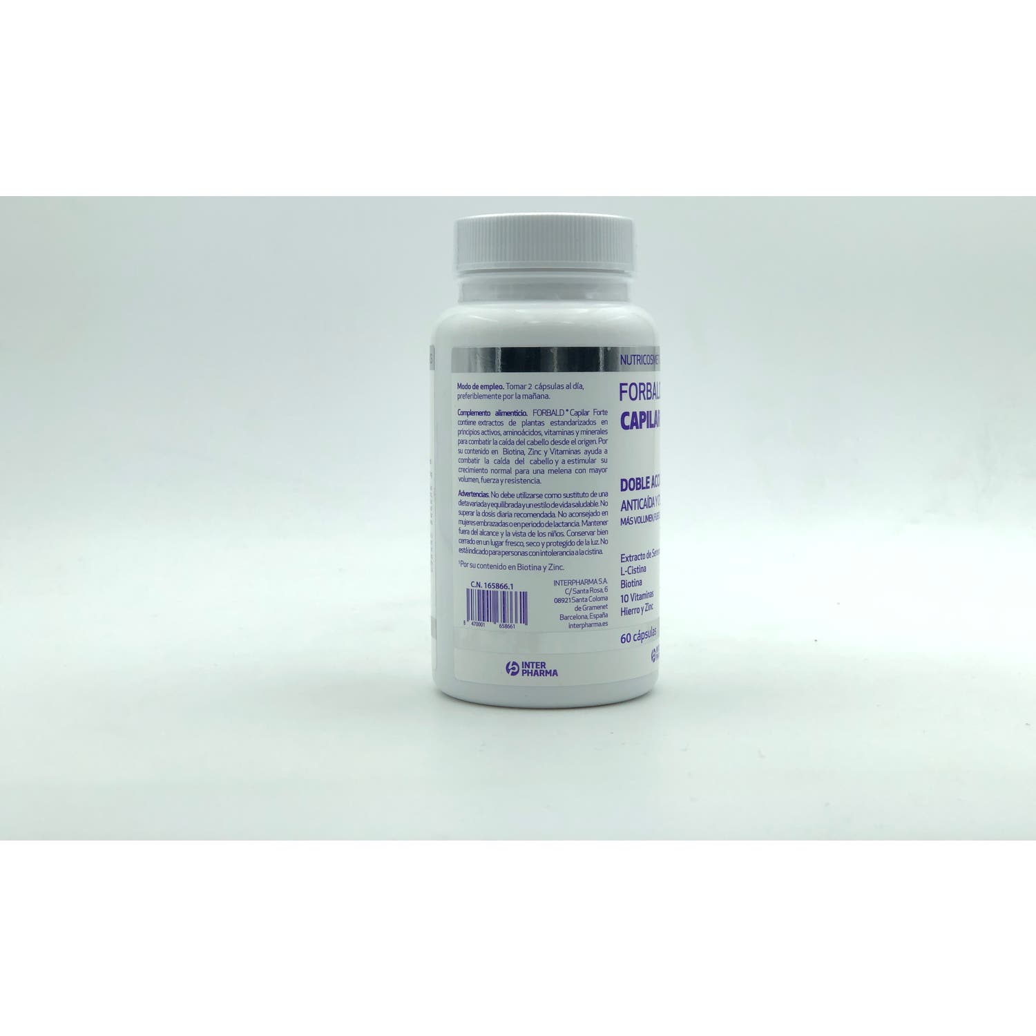 Forbald capilar Forte 60cáps es un complemento alimenticio que ayuda a frenar la caída del cabello, fortalece el pelo y favorece su crecimiento, tanto en el cabello del hombre como el de la mujer. Contiene un gran aporte de vitaminas, minerales y extractos de plantas que refuerzan el cabello desde el interior, revitalizando y aumentando el volumen capilar.