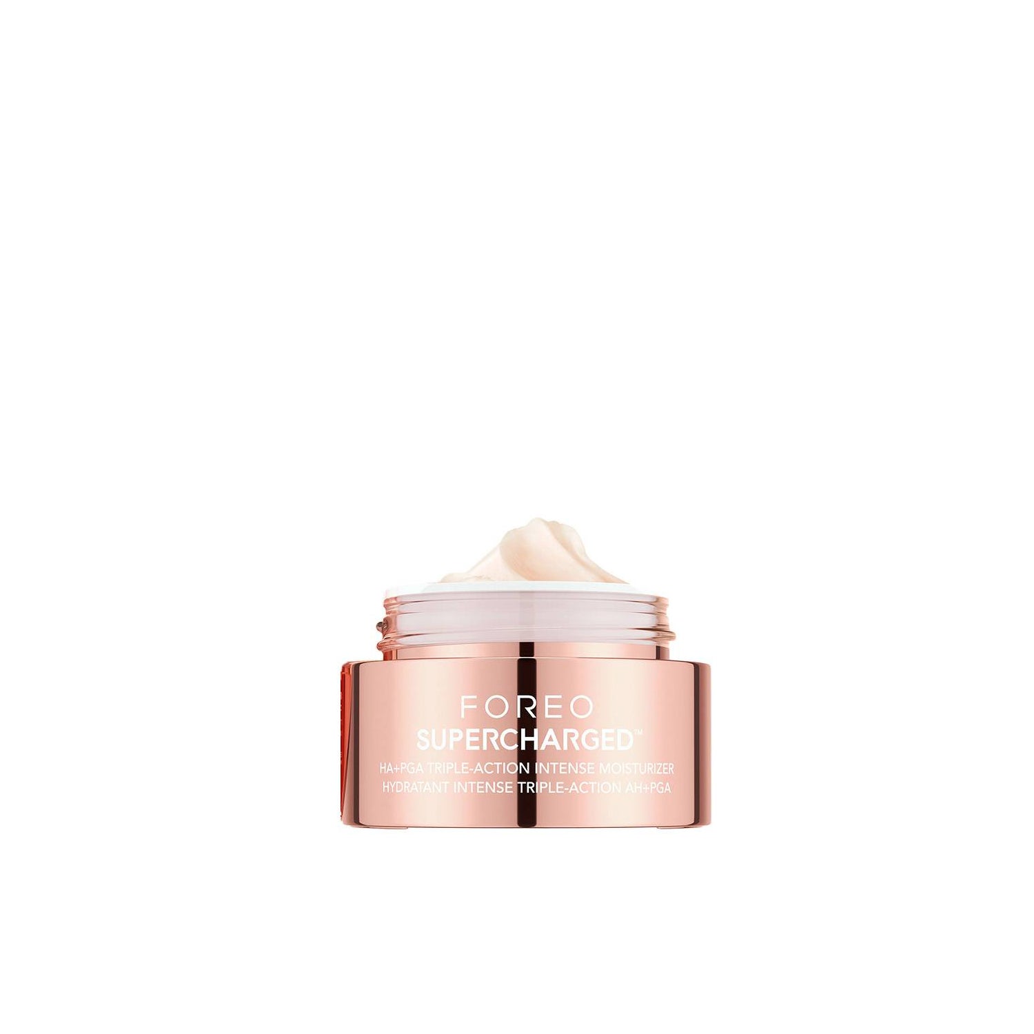 Foreo Supercharged Ha+Pga Triple-Action Intense Moisturizer 50ml es un gel crema excepcionalmente rico que se absorbe rápidamente. Este producto ha demostrado clínicamente que incrementa la hidratación de la piel en un 40% en tan solo 15 minutos.