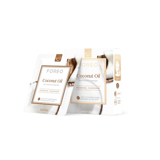Foreo UFO Coconut Oil Activated Mask 6x6g es una mascarilla diseñada para proporcionar una intensa hidratación a la piel. Formulada con aceite de coco, esta mascarquilla ultranutritiva es adecuada para todos los tipos de piel, aunque se recomienda especialmente para aquellas que presentan sequedad o deshidratación.