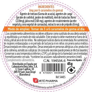 Forté Pharma Forté Caramelos Goma Miel 45 caramelos son unos caramelos con propiedades suavizantes para la garganta