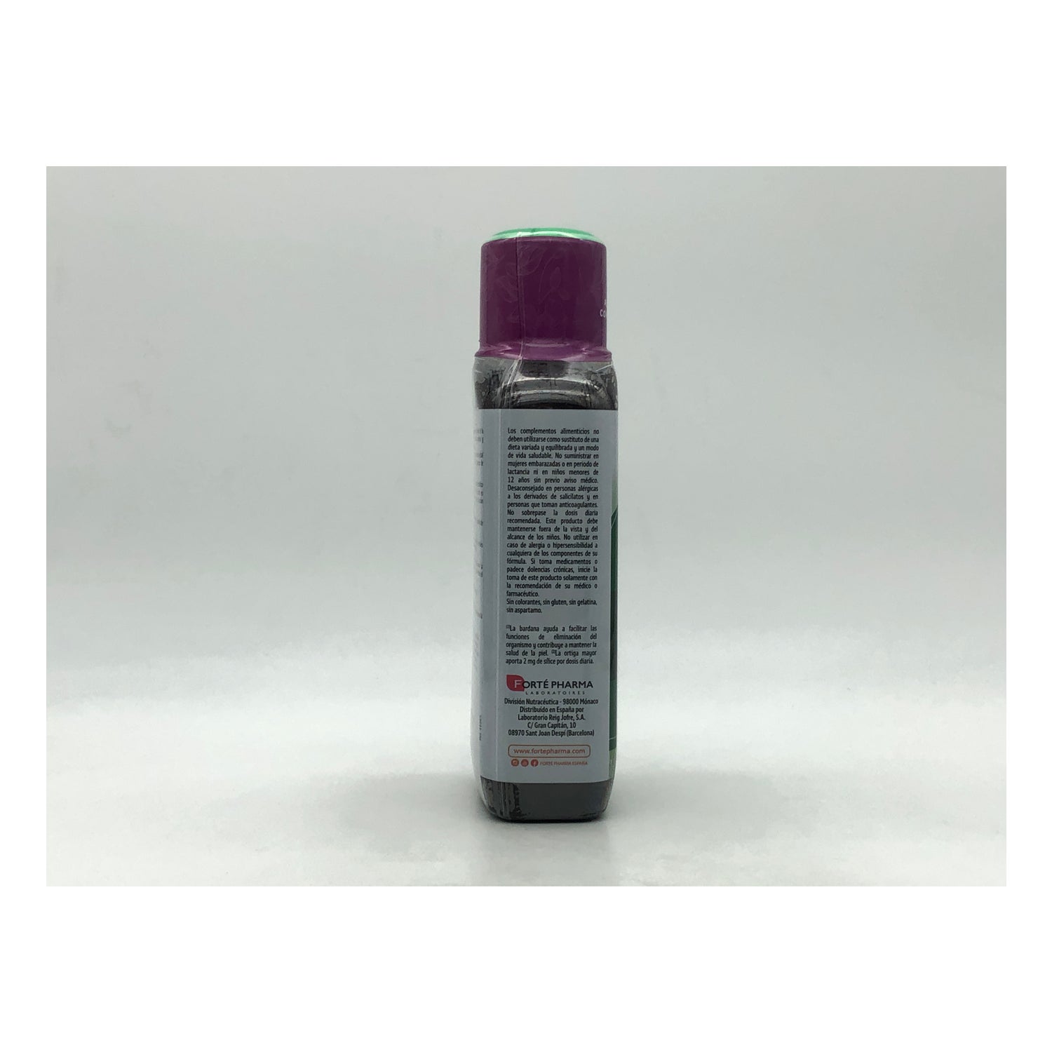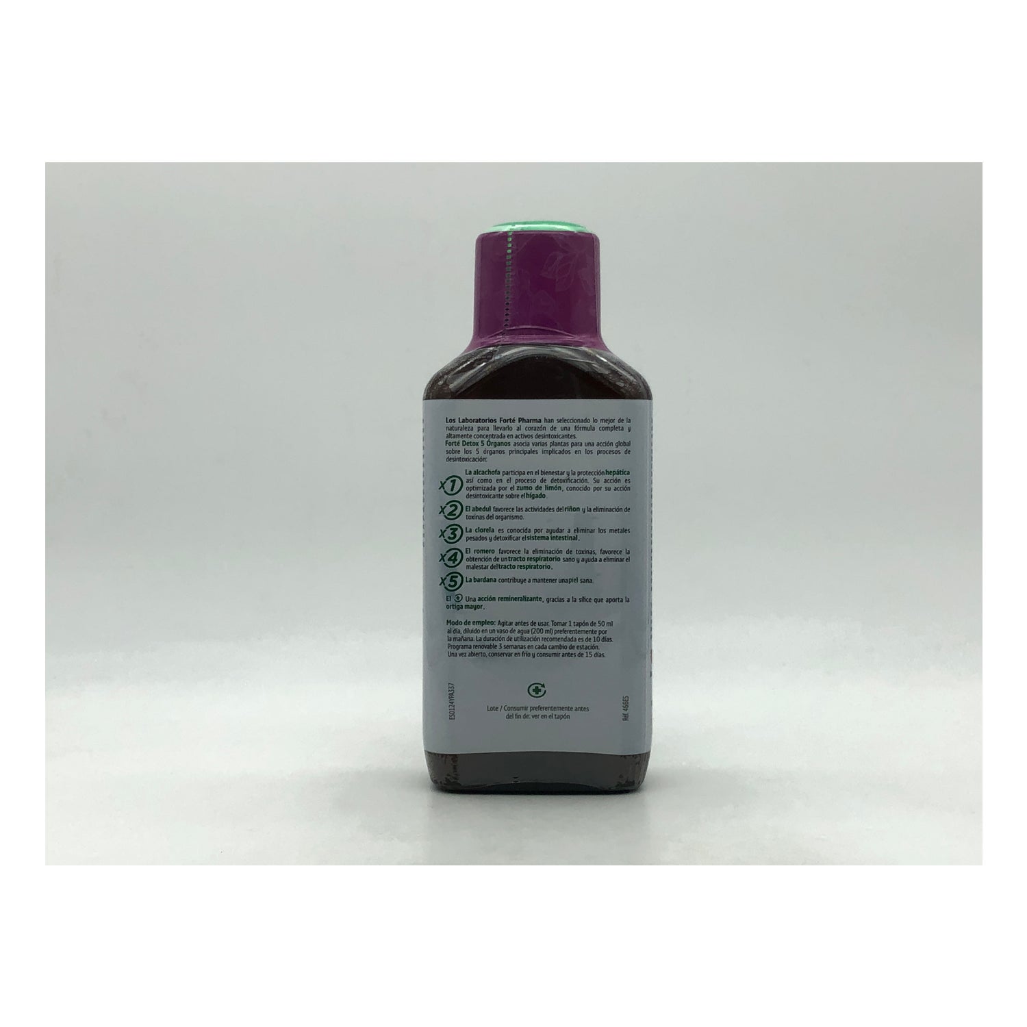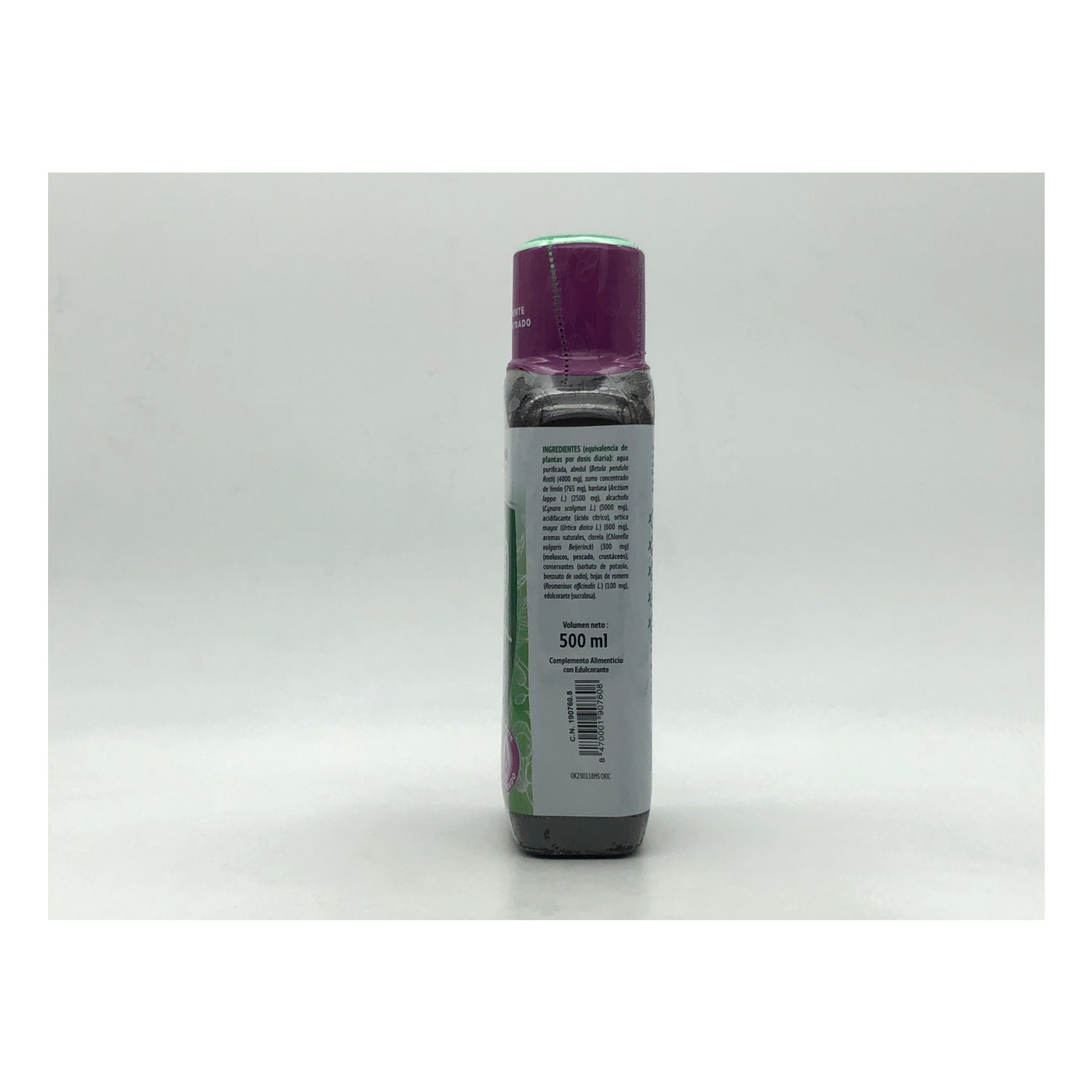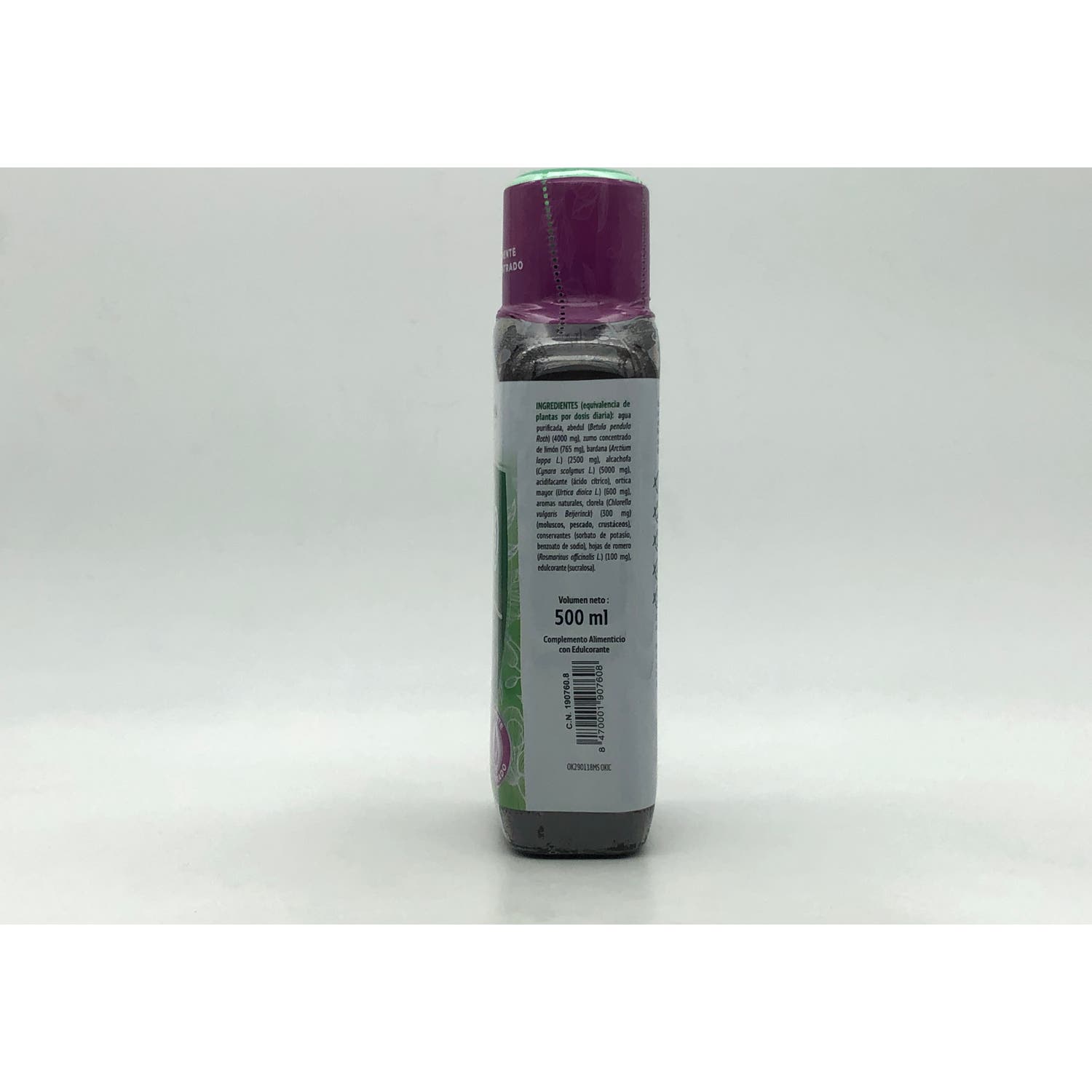 Ingredientes: agua purificada, abedul (Betula pendula Roth) (4000 mg), zumo concentrado de limón (765 mg), bardana (Arctium lappa L.) (2500mg), alcachofa (Cynara scolymus L.)(5000 mg), acidulante (ácido cítrico), ortiga picante (Urtica dioica L.) (600 mg), aromas naturales, chlorella (Chlorella vulgaris Beijerinck) (300 mg) (móluscos, pescados, crustáceos), conservantes (sorbato de potasio, benzoato de sodio), romero (Rosmarinus officinalis L.) (100 mg), edulcorante (sucralosa).