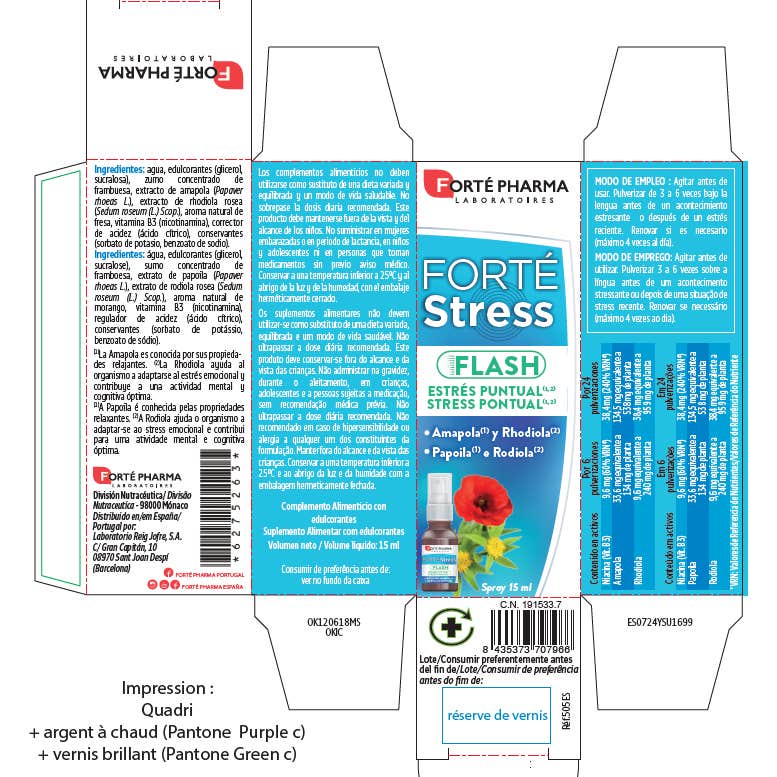 Forté Pharma Forté Stress Flash 15ml es un suplemento que actúa como coadyuvante en procesos de estrés.