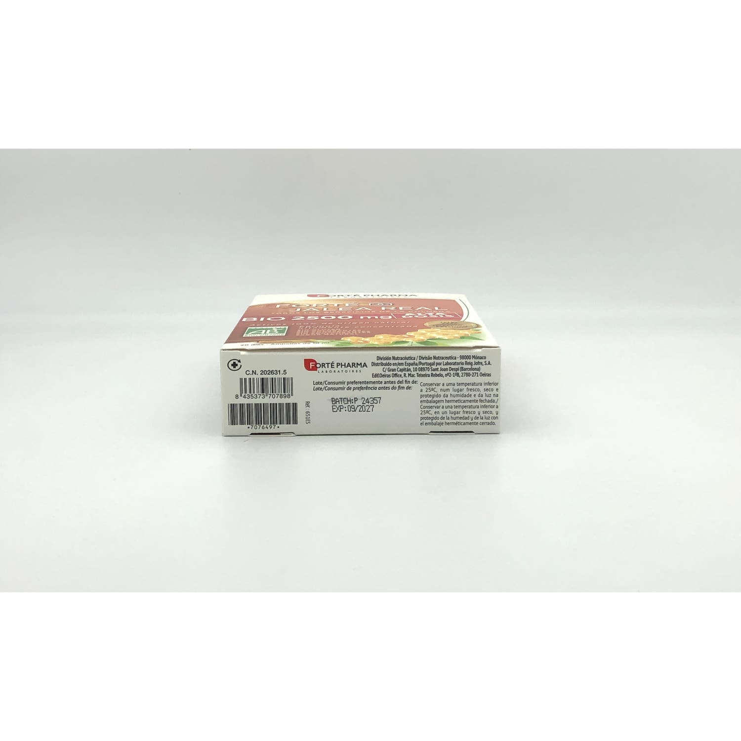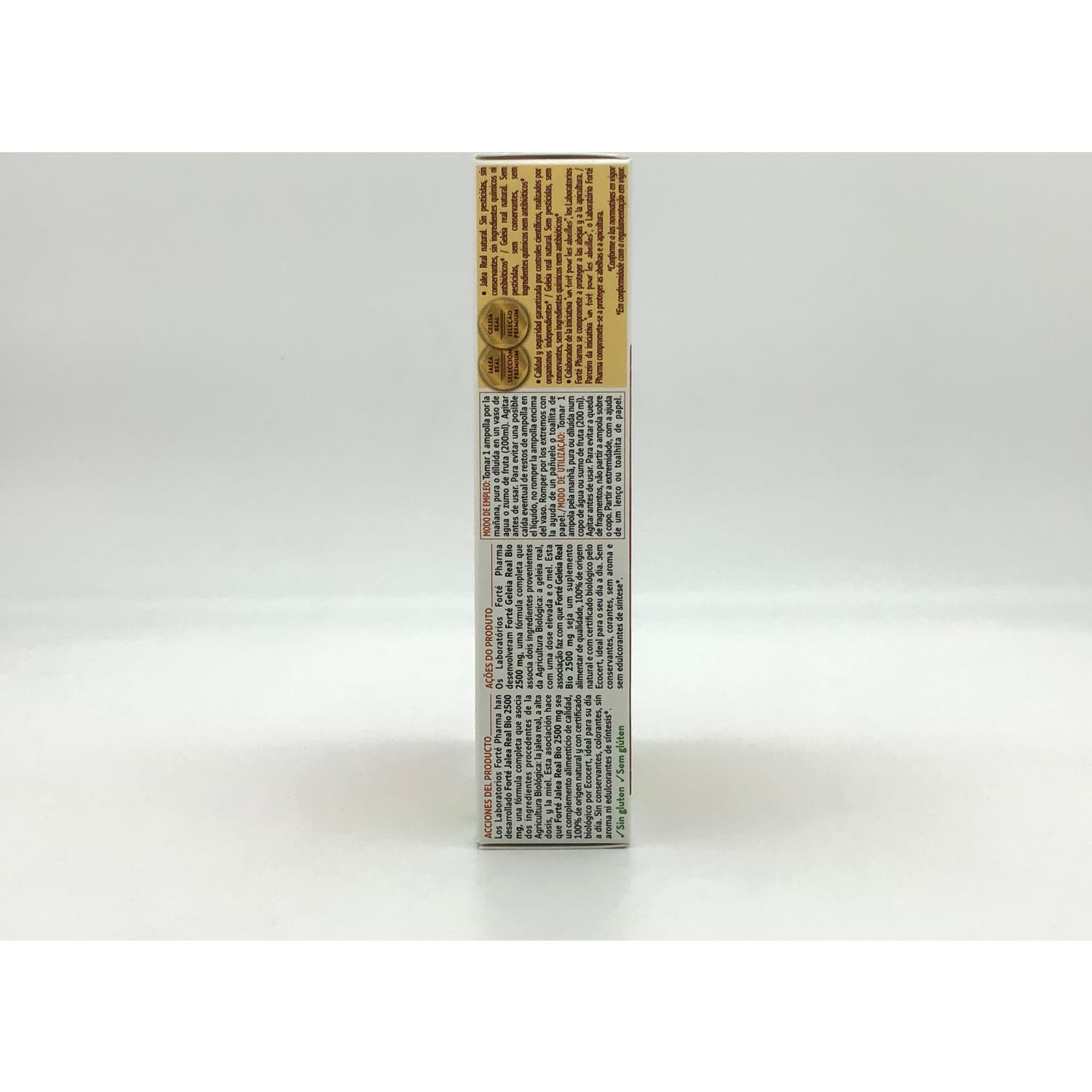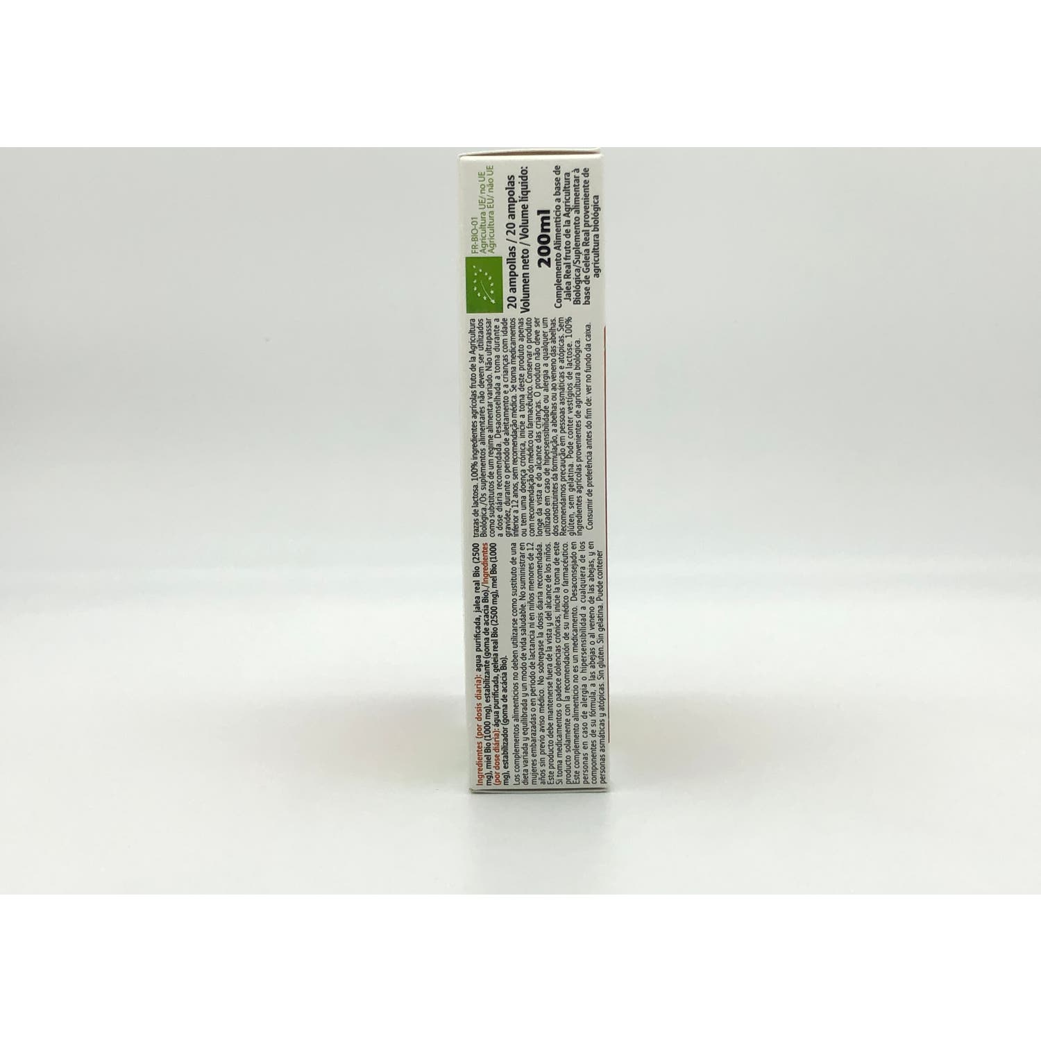 Agua purificada, jalea real orgánica, miel orgánica, estabilizador (goma de acacia orgánica).