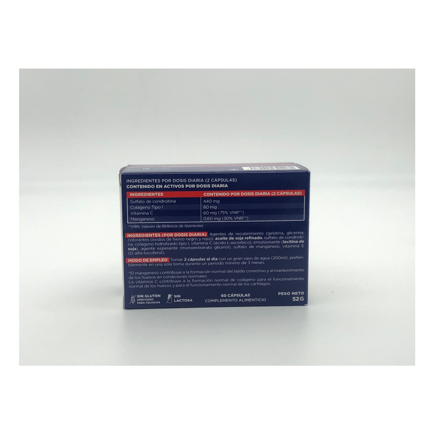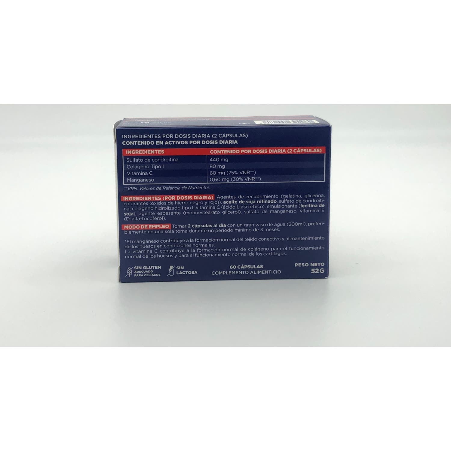 A base de colágeno, mucopolisacáridos, vitamina C y manganeso. La combinación de estos activos ayudan a aportar más resistencia y flexibilidad en las articulaciones.