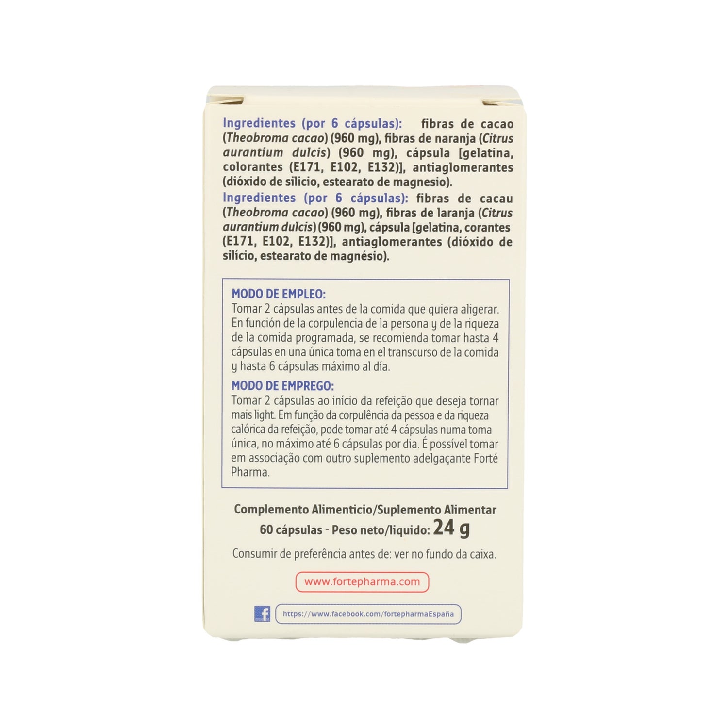 Fibras de cacao (Theobroma cacao L.), fibras de naranja (Citrus aurantium dulcis), cápsula [gelatina, colorante: complejo cúprico de clorofilina], antiaglomerantes (dióxido de silicio, sales magnésicas de ácidos grasos).