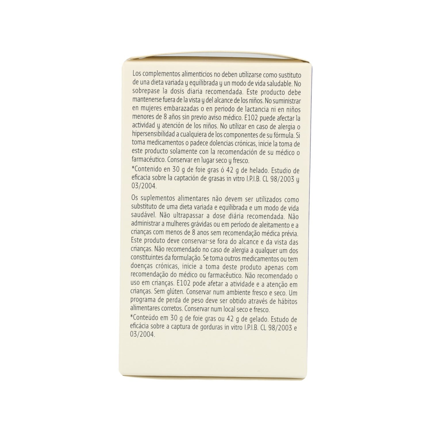 Su fórmula se basa en el fibrocaptol, una asociación de fibras de naranja y de cacao con una fuerte acción lipoabsorbente.