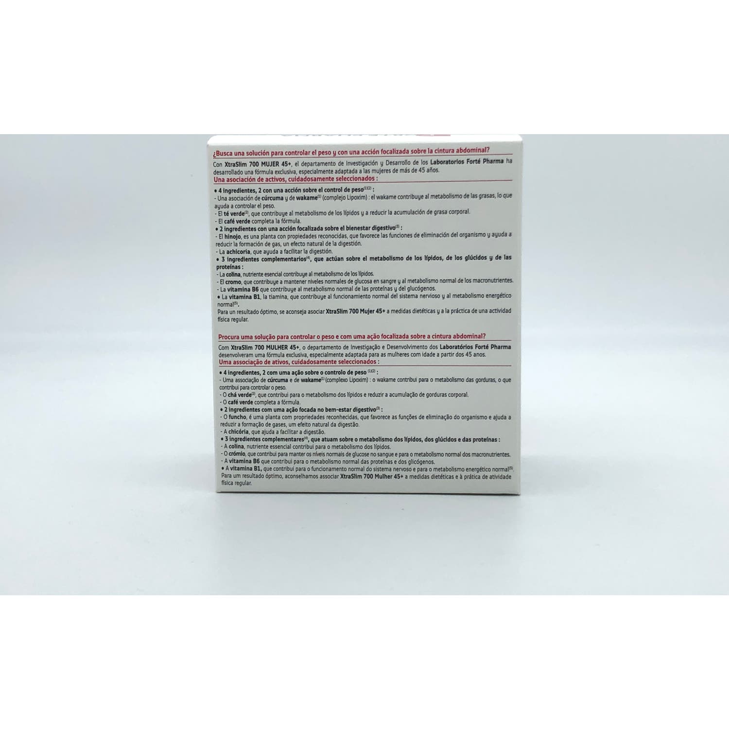 Forté Pharma XtraSlim 700 Mujer 45+ 120caps es un complemento alimenticio a base de activos naturales como la cúrcuma, el té verde o el café verde, que pueden contribuir a la pérdida de peso.