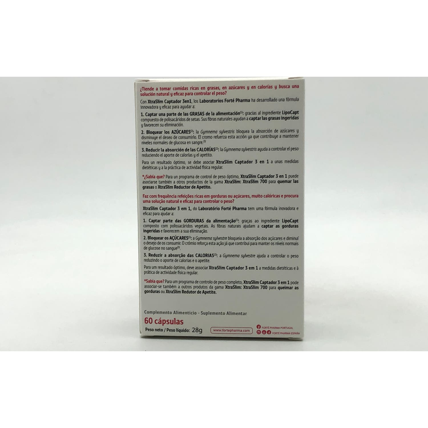 Forté Pharma XtraSlim Captador 3 en 1 Extra 60caps es un suplemento cuya fórmula ayuda a captar una parte de las grasas de la alimentación gracias al LipoCapt, un compuesto de polisacáridos de setas.