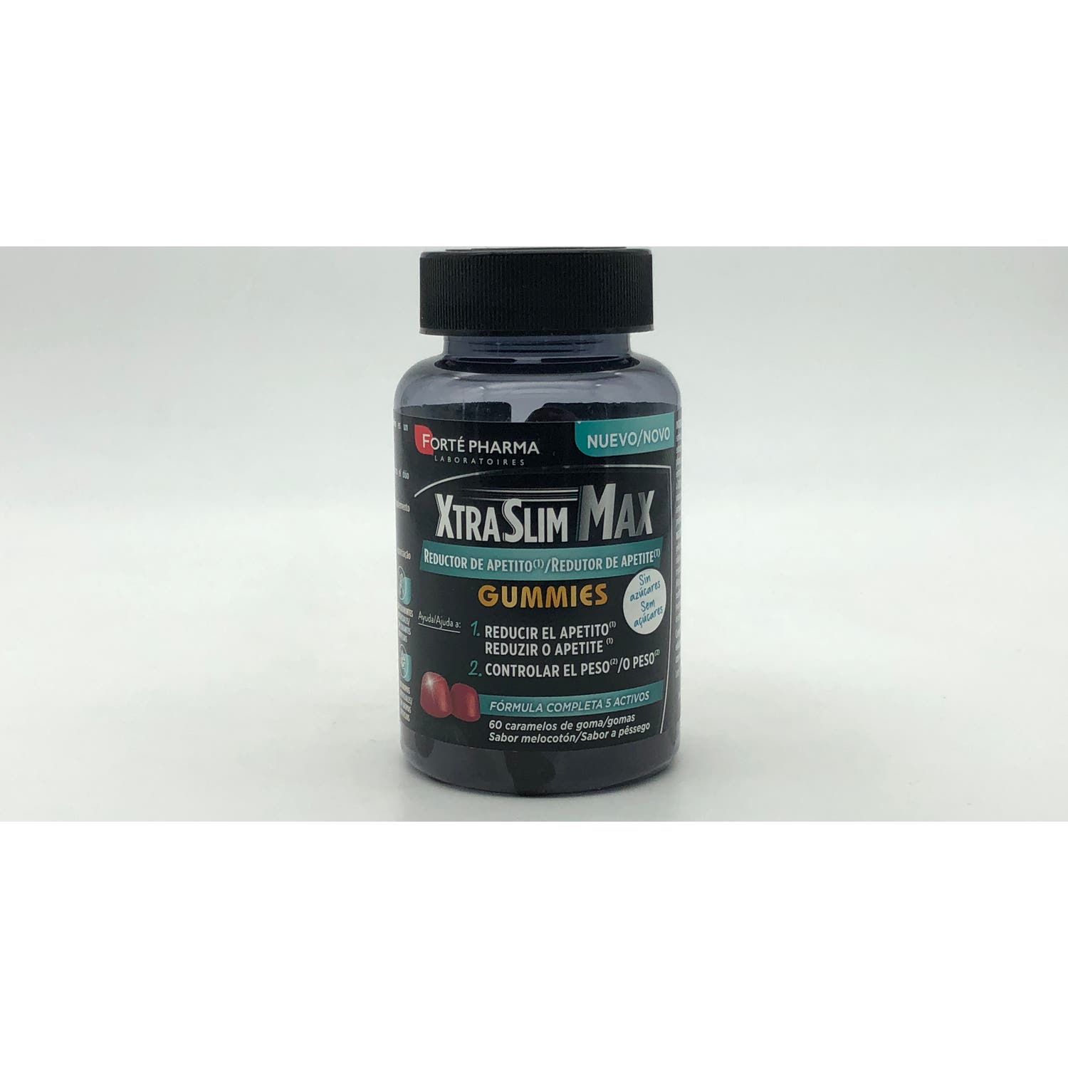 Forte Pharma Xtraslim Max Reductor Gummies 60uds es un complemento alimenticio en formato gominolas que ayuda a ejercer un efecto saciante y a reducir el apetito, gracias al extracto de algarroba. Asimismo, están enriquecidas con cromo, zinc y vitaminas B5 y B6. Contiene 60 gominolas. Sabor a melocotón.