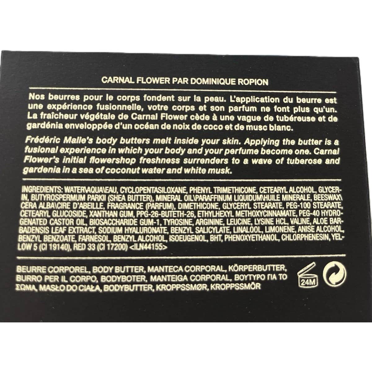 Frederic Malle Carnal Flower Body Butter 200ml es una crema corporal excepcional, diseñada por el reconocido perfumista Dominique Ropion. Este producto se destaca por su composición única, que incluye: