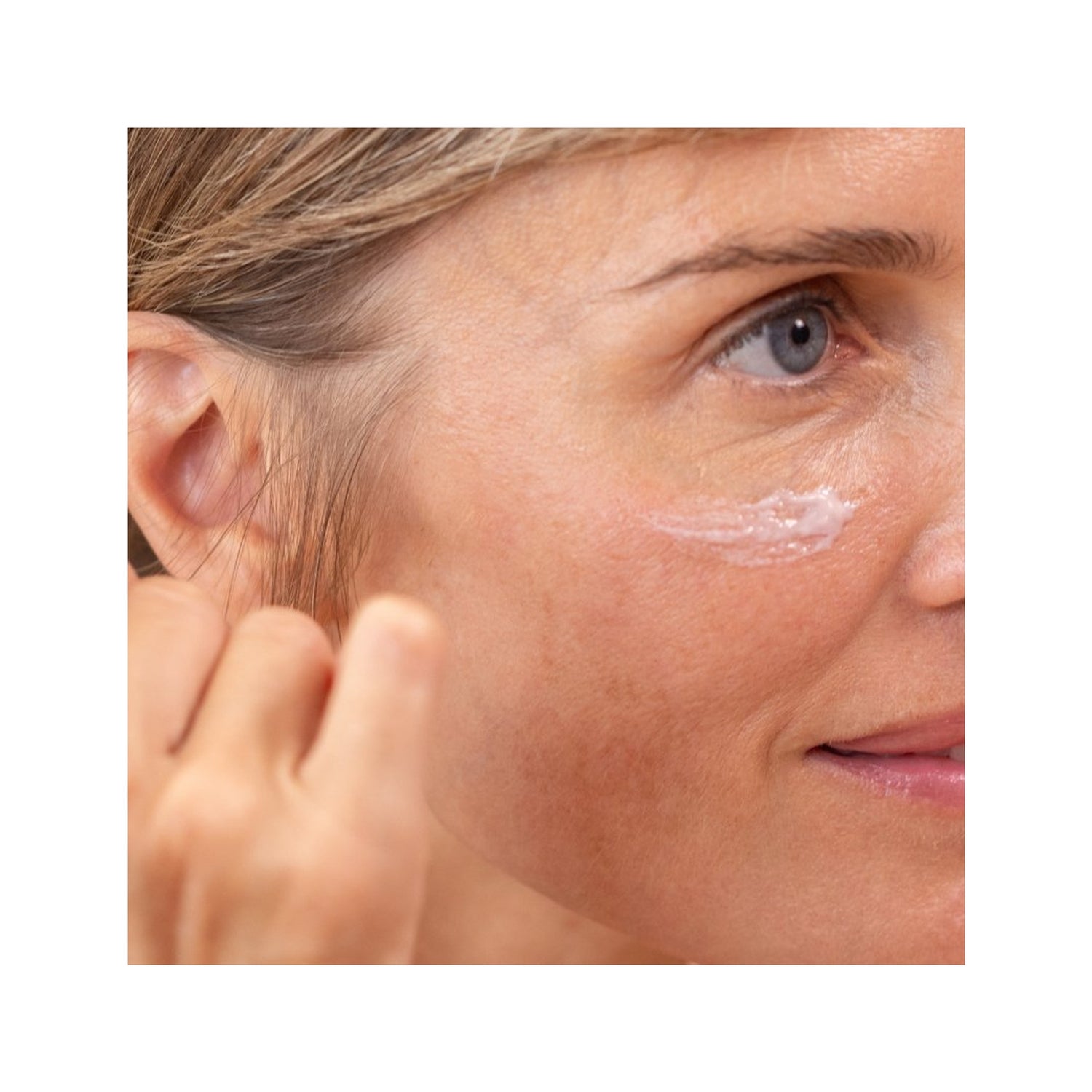 “He aprendido a entender las necesidades nuevas de mi piel. En el rostro hay zonas con la piel muy fina, como el contorno de los ojos y el labio, y noto que necesitan un cuidado extra”. Mónica, 58 años ¿Has notado lo mismo? Esta crema de contorno de ojos y labios es tu nueva aliada. Formulada junto con Mónica y otras 21 mujeres, aporta el confort y nivel óptimo de hidratación que estas dos zonas tan sensibles necesitan. Así logra compensar la sequedad provocada por la reducción de estrógenos durante la menopausia. Crema de contorno de ojos y labios para la menopausia Acabado nutrido, piel protegida Forma un biofilm no pegajoso que protege las zonas más sensibles y secas Reduce la sequedad y la tirantez Sensación de confort 24h Atenúa las arrugas típicas del contorno y los labios 100% origen natural. Perfume natural. ¡Suave y de origen natural! Notas florales de vainilla, violeta y rosa, con un corazón de hoja de naranja y matices frutales de granada y pomelo. ¡Una combinación deliciosa!