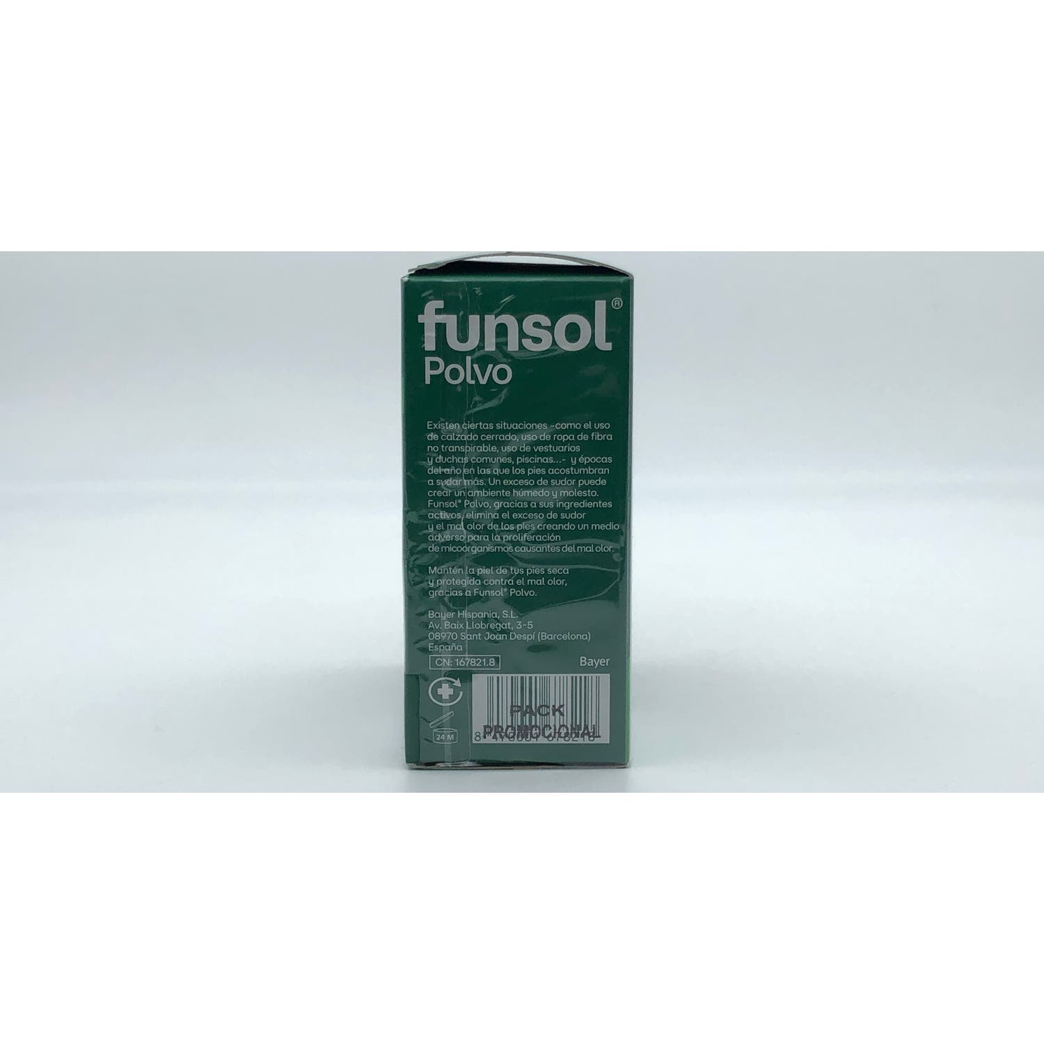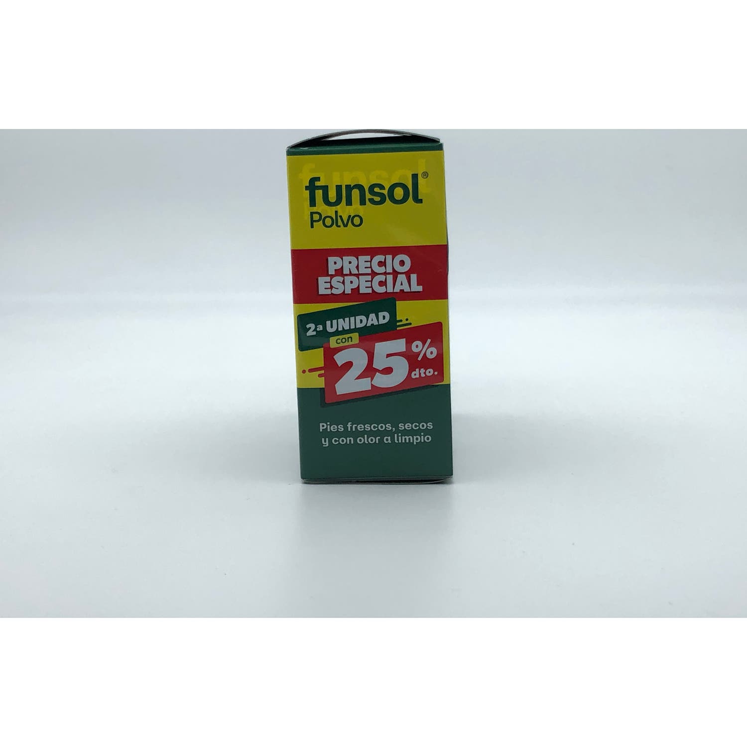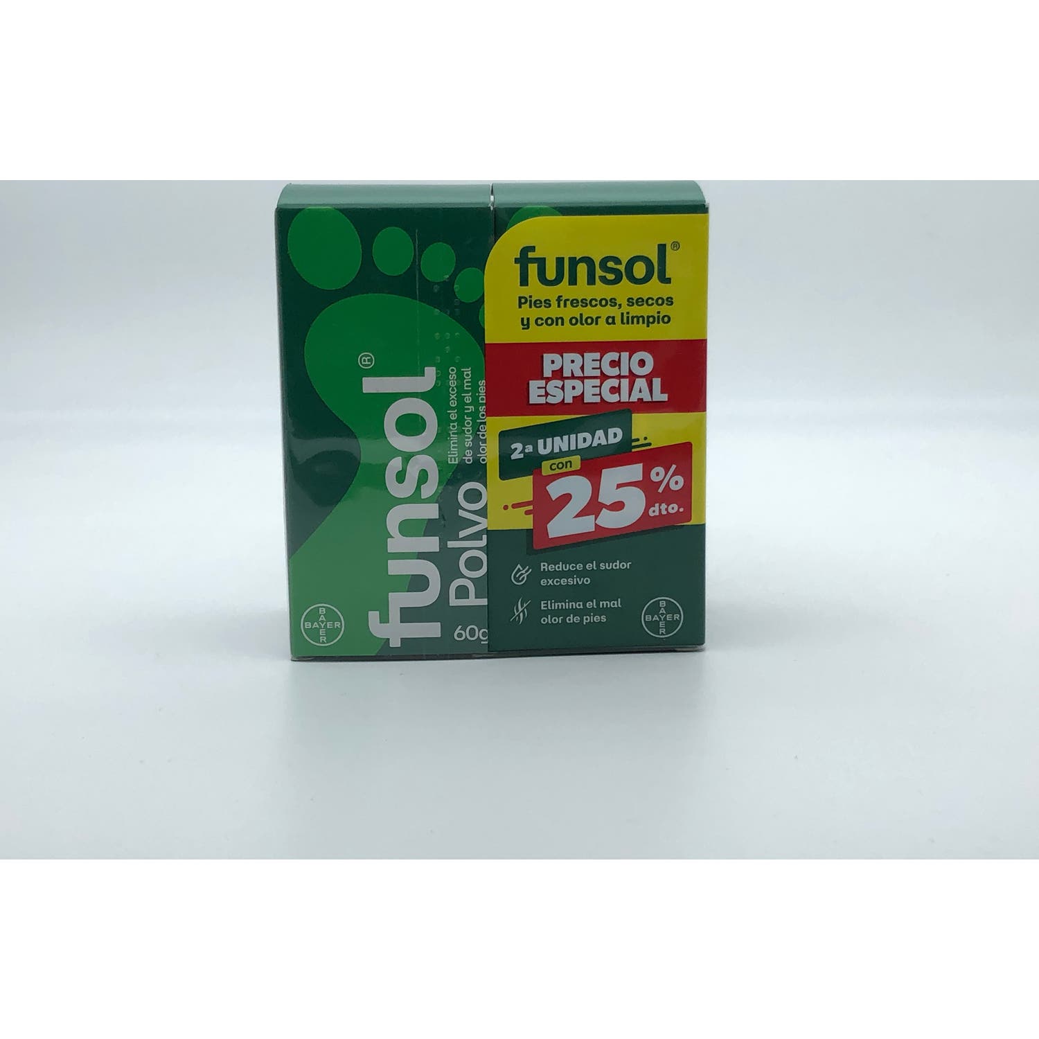 Funsol Polvo 2x60g es un tratamiento desodorante en polvo que ayuda a reducir la sudoración excesiva de los pies y el mal olor.